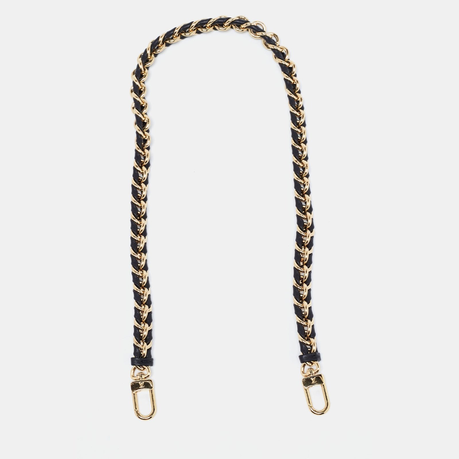 Louis Vuitton brings you this chic shoulder strap to carry your handbags in different ways. The strap is made from interwoven leather and gold tone metal. It is complete with simple clasps.