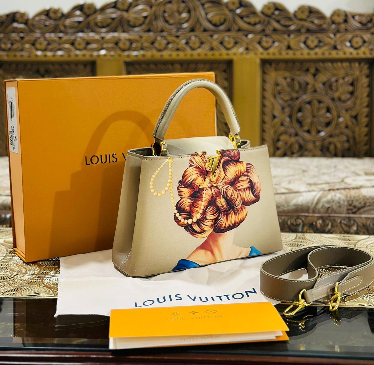 Elevate your style with the Louis Vuitton Capucines Women Bag, a premium accessory designed to mirror the elegance and sophistication of the original. This exquisite bag comes complete with a branded box, ensuring a luxurious unboxing experience.
