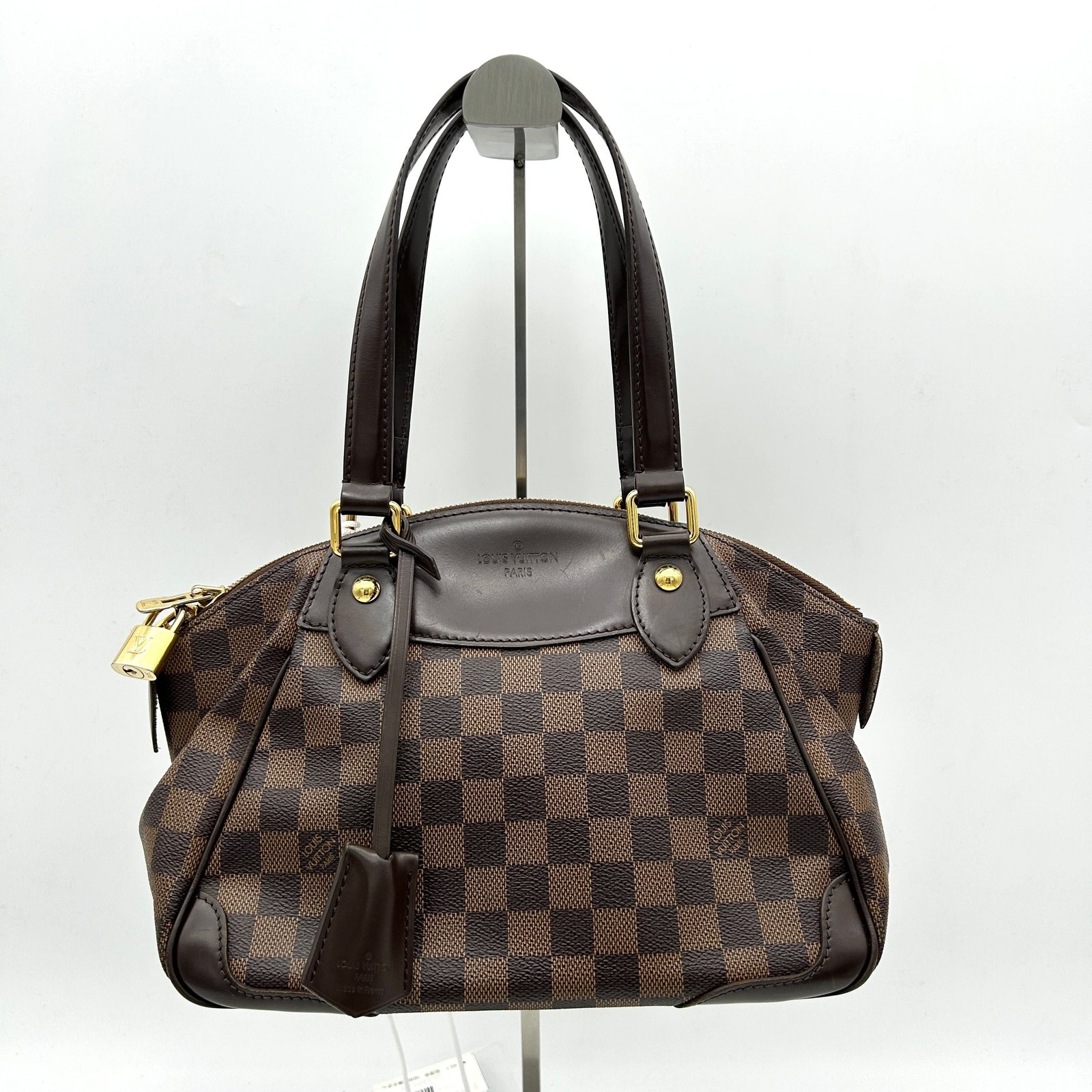This authentic used Louis Vuitton Damier Ebene Canvas Verona PM Bag is a perfect blend of elegance and practicality, ideal for the modern woman. Crafted in the iconic Damier Ebene canvas, this bag boasts luxurious red microfiber lining and boasts a zipper closure. With its structured design and leather handles, it represents a timeless addition to vintage Louis Vuitton bags, a must-have for those who treasure used designer handbags.