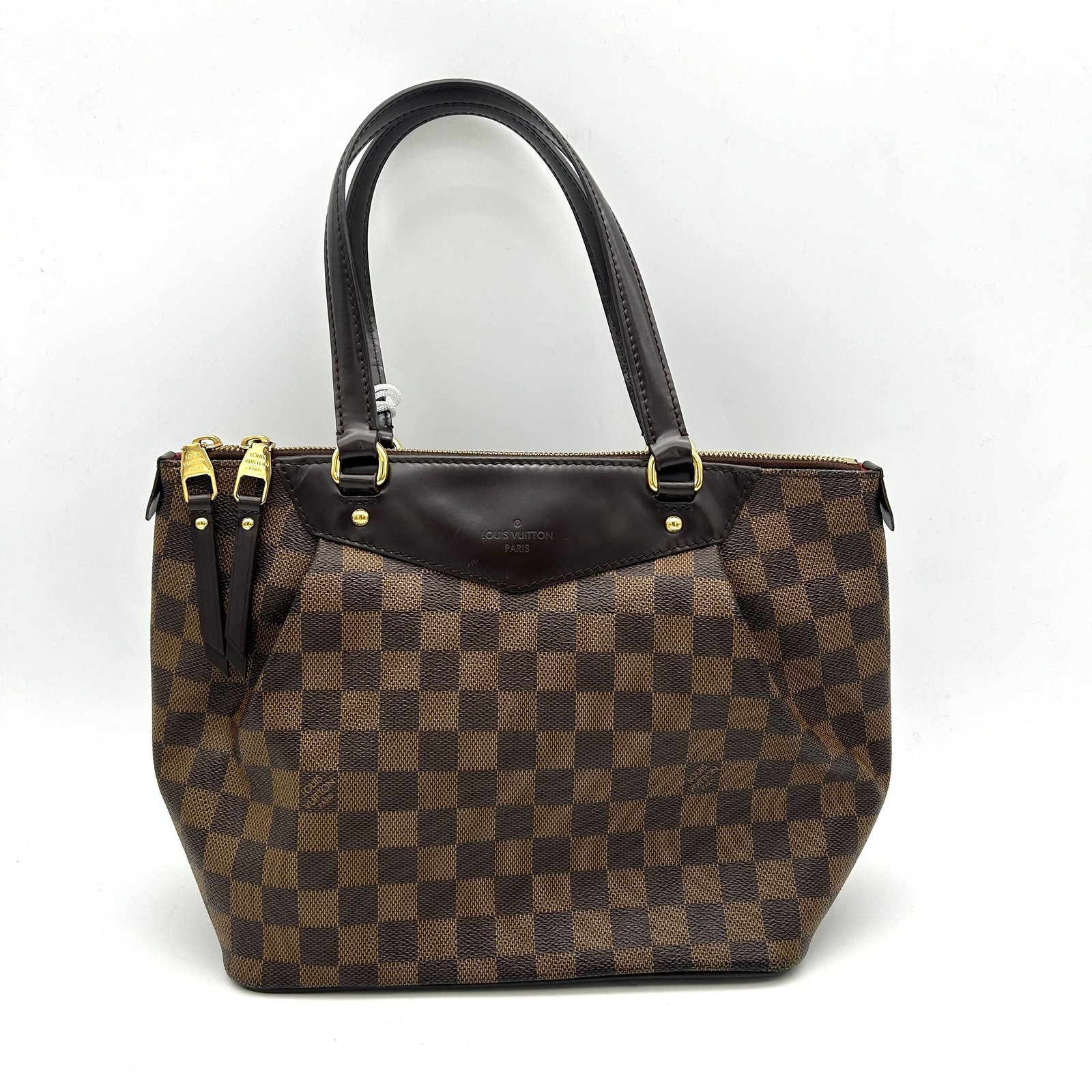 This authentic LOUIS VUITTON Damier Ebene Broadway Messenger Bag is a stunning example of luxury fashion. Crafted from Louis Vuitton’s signature brown Damier checkered canvas, this chic messenger bag features a nylon cross-body strap with gold adjustable buckles and links, along with a brown leather top handle for easy carrying. The crossover flap opens to reveal two bucket pockets, secured with chocolate leather belts and links, adding both style and functionality. Inside, the bag is lined with burnt orange fabric and includes patch pockets for organization. If you’re looking to buy used handbags or want to buy pre-owned handbags that combine elegance with practicality, this Louis Vuitton bag is the perfect addition to your collection.