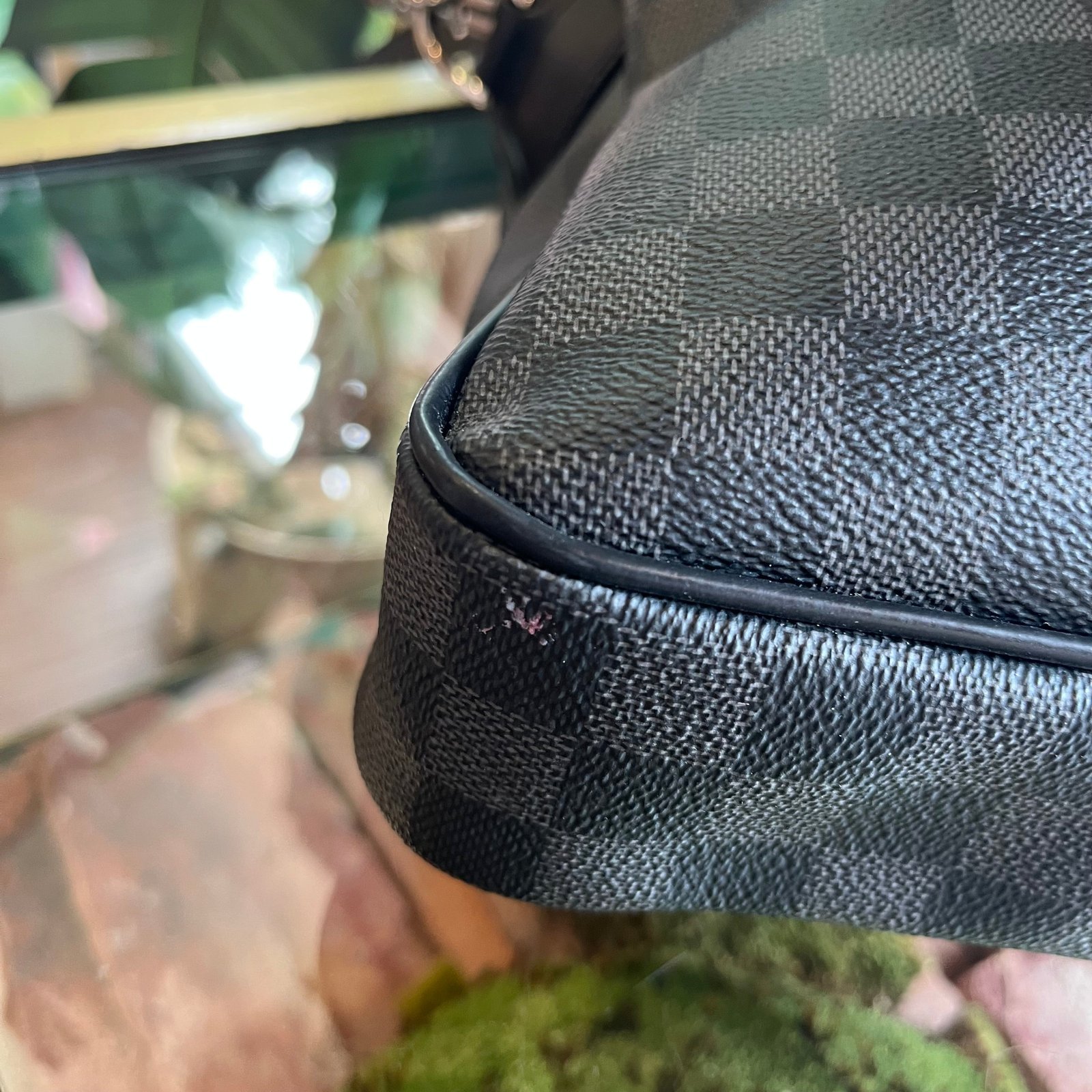 Elevate your style with the LOUIS VUITTON Porte Documents Voyage Damier Graphite Messenger. Crafted with the iconic Damier Graphite pattern, this messenger bag exudes sophistication and luxury. The spacious interior and multiple pockets provide practicality, while the sleek design makes a statement. Perfect for the modern gentleman on the go. Very good condition.