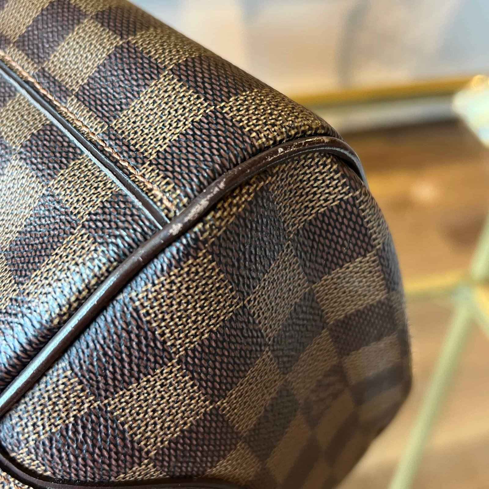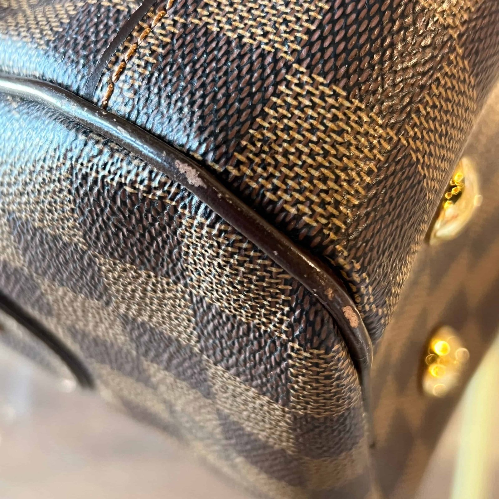 Indulge in the timeless elegance of the LOUIS VUITTON Duomo Damier Ebene Satchel. Crafted with the iconic Damier Ebene canvas, this satchel exudes sophistication and luxury. Its spacious interior and sturdy structure make it the perfect balance of style and functionality. Elevate your wardrobe with this exclusive piece. Good condition.