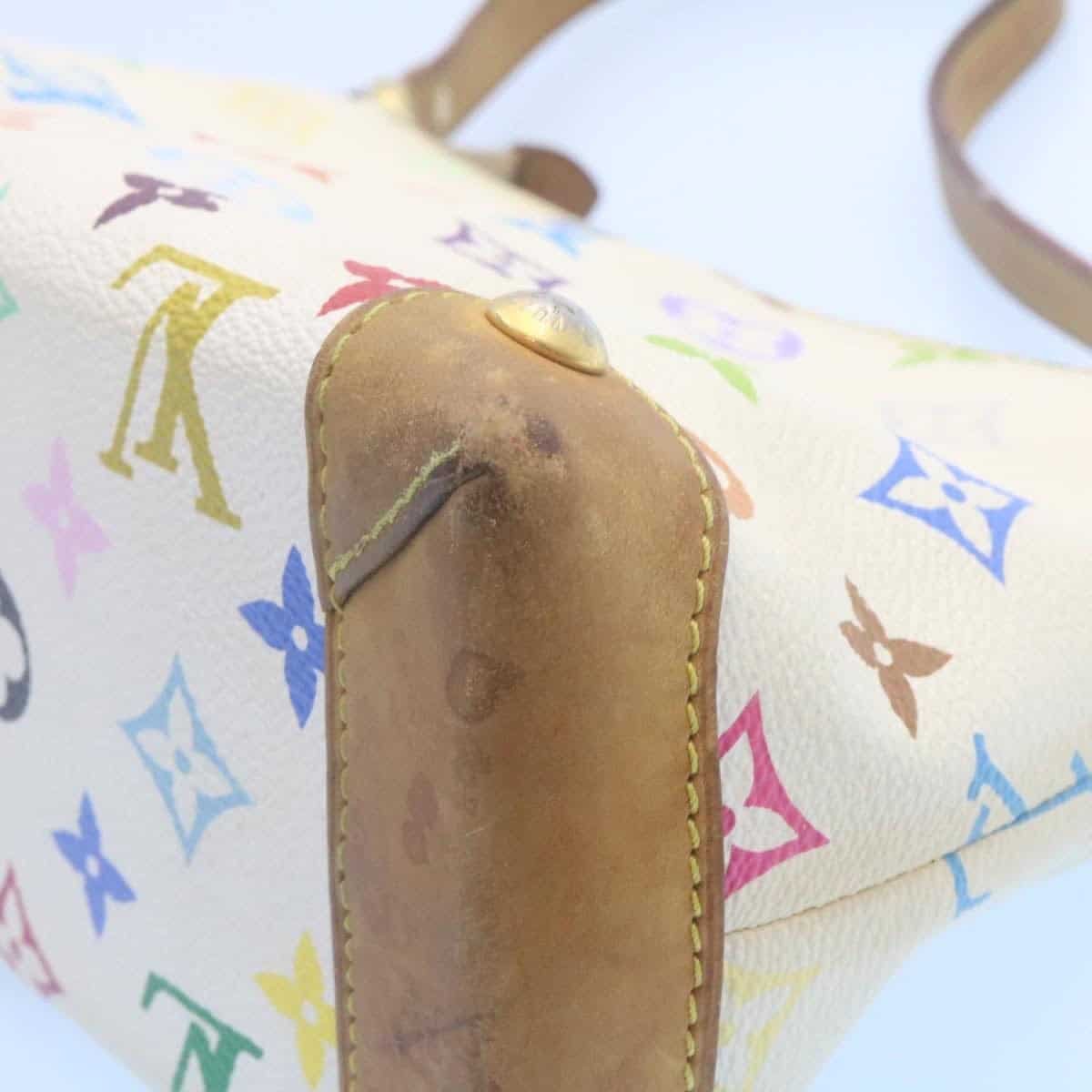 Outside:The bag is slightly lose shape.The leather are slightly scratched and slightly .The corners are slightly rubbed.