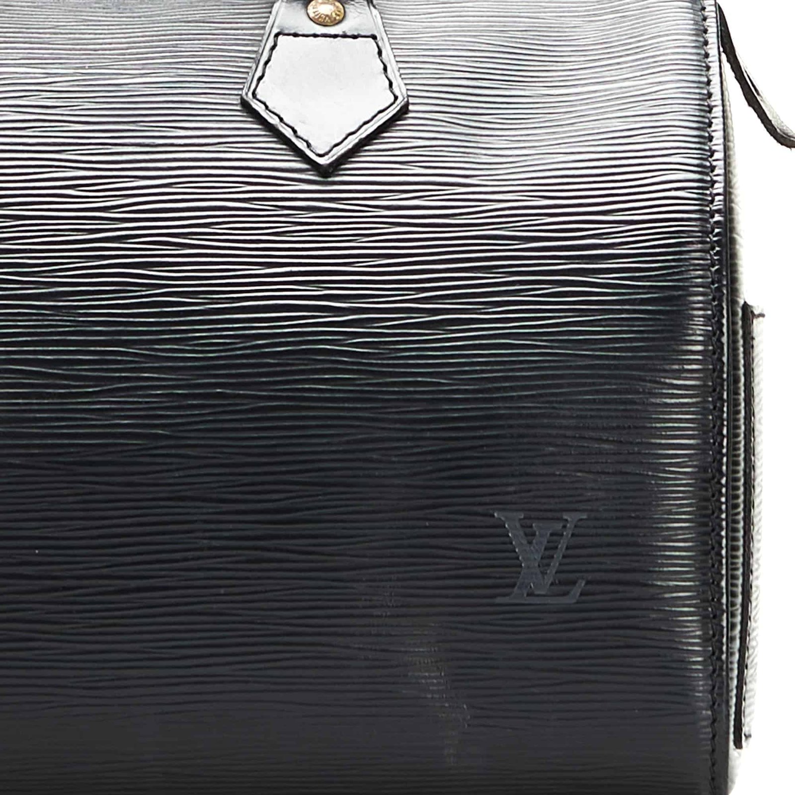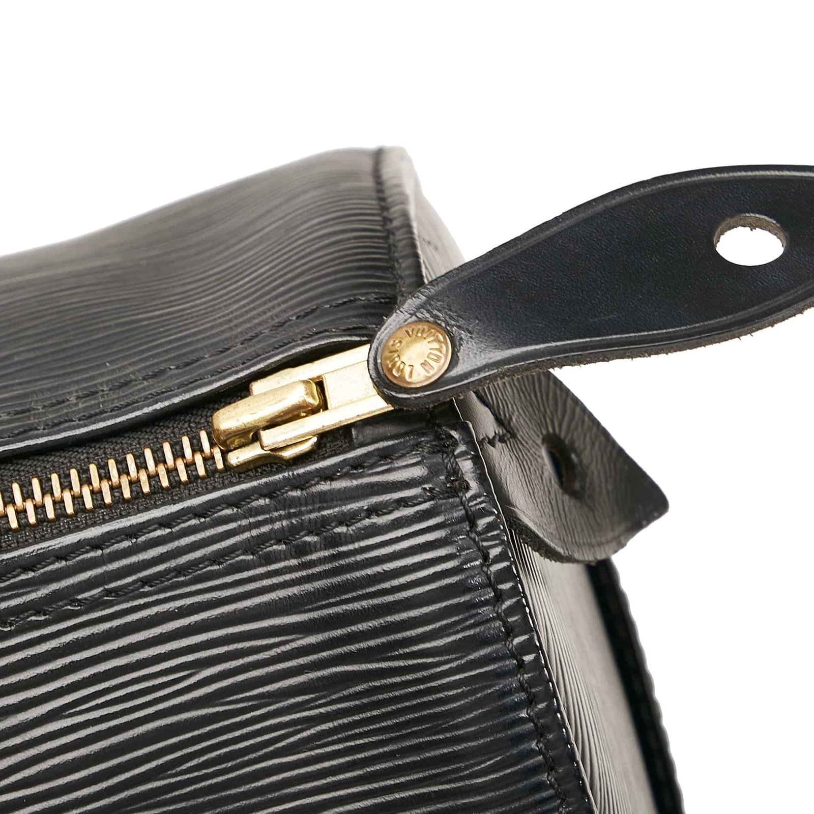 The Speedy 25 is crafted of Epi Leather in black and features rolled leather handles, and a top zip closure.