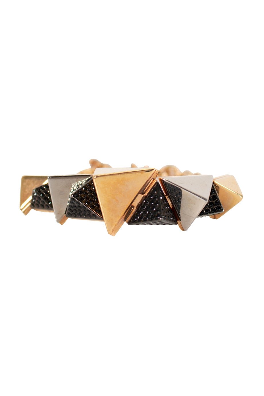 LOUIS VUITTON Gold, silver and black crystal bracelet with connecting pyramids and clip fastening with LV branding