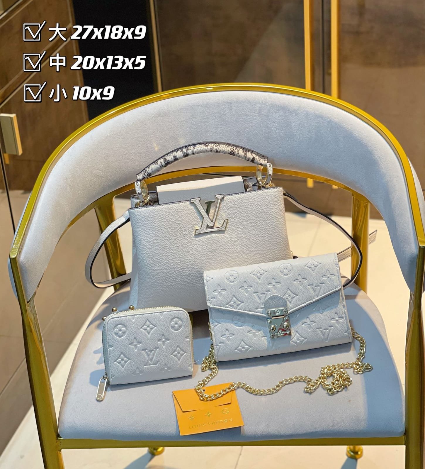 You can also customize your own sets but swapping bags from different sets and different brands Respective of size i.e a big bag can only be swapped with a big bag from any set or and brand , medium for a medium bag and wallet for a wallet of any brand.T&Cs apply
