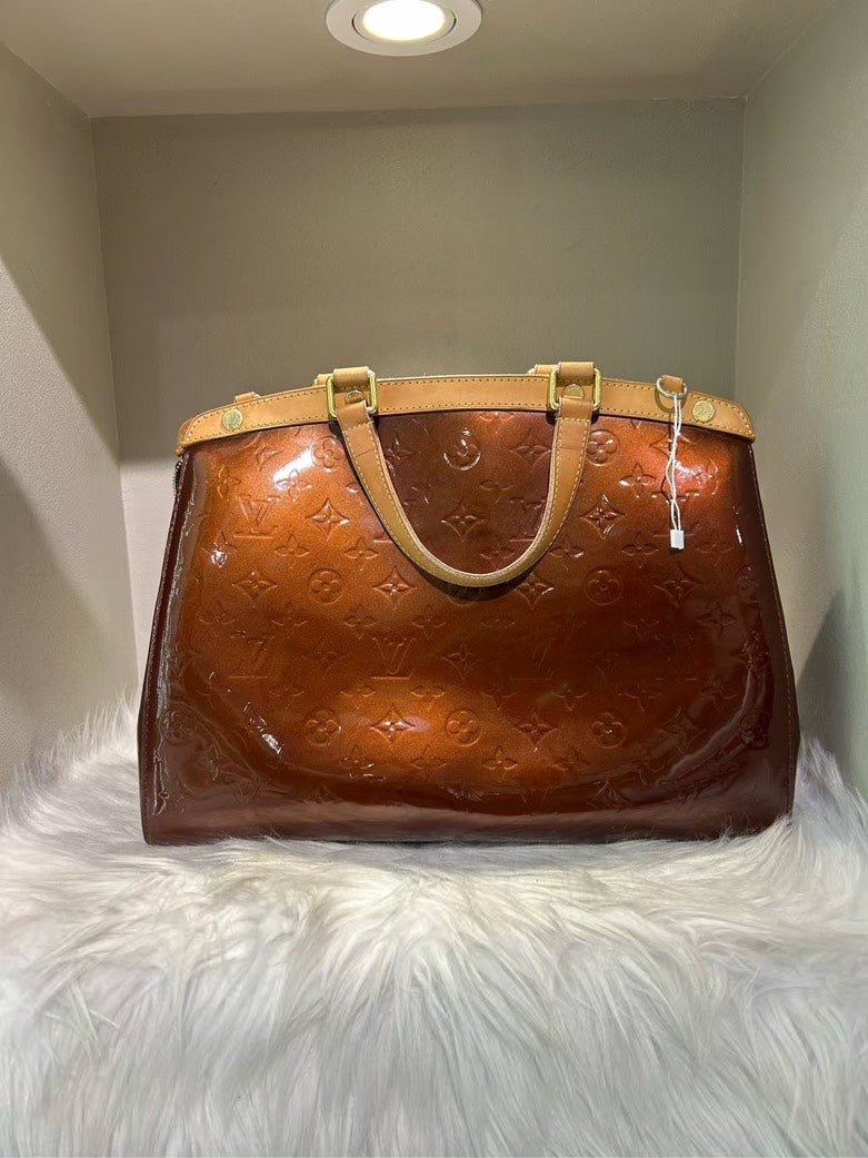 This genuine used Louis Vuitton Houston Monogram Vernis Shoulder Bag is a timeless piece for those who appreciate the charm of vintage Louis Vuitton bags. Crafted from deep brown patent leather with the iconic monogram pattern, this bag is perfect for a touch of elegance. The tan leather straps and gold hardware complement the rich exterior, while the beige fabric interior offers functionality without sacrificing style. Elevate your collection of used designer handbags with this exquisite piece.