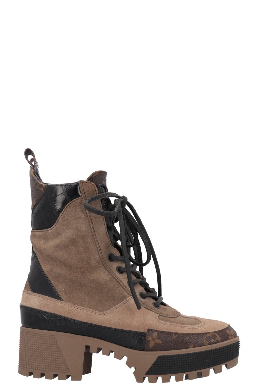 Die Louis Vuitton Laureate Boots aus Khaki-Suede sind die perfekte Mischung aus robustem Stil und luxuriöser Eleganz. Der Materialmix und die präzise Verarbeitung machen diese Boots zu einem vielseitigen Begleiter – ob in der Stadt oder bei Abenteuern in der Natur.