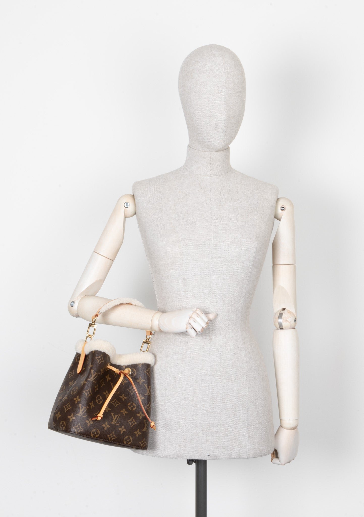 Diese atemberaubende Louis Vuitton BB Neonoe Bucket Bag mit Shearling-Details am Henkel und Rand ist ein echtes Highlight der Marke. Gefertigt aus klassischem Monogram-Canvas mit edlen Lederakzenten und weichem Lammfell, strahlt sie eine besondere Eleganz aus. Das Zugband ermöglicht ein einfaches Verschliessen, und sie kann sowohl als Crossbody als auch als Handtasche getragen werden. Die Tasche bietet ausreichend Platz für all deine Essentials wie Handy, Portemonnaie und mehr – der perfekte Begleiter für jeden Anlass.