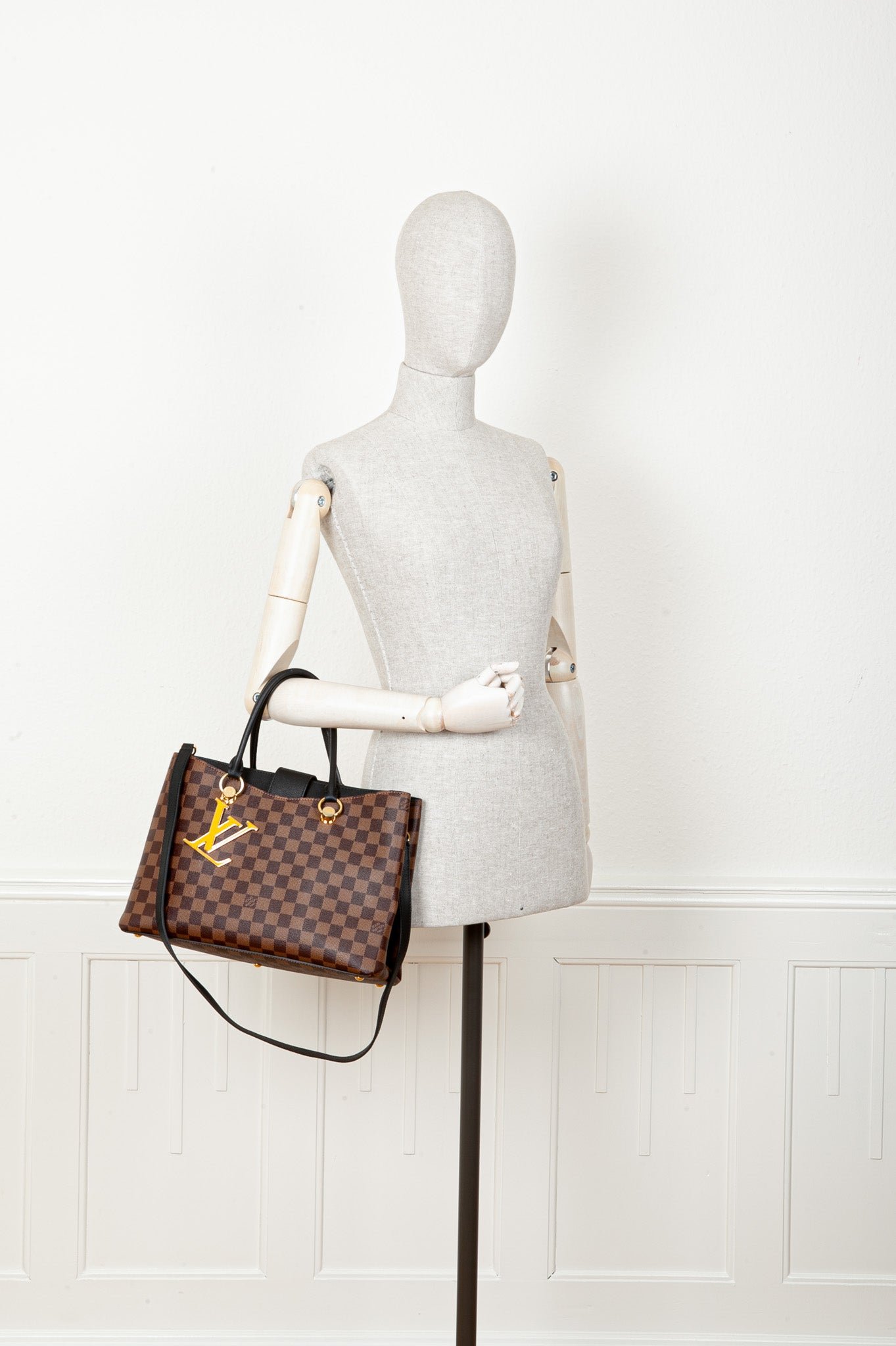 We Love: Die Louis Vuitton Riverside aus ikonischem Damier Ebene Canvas gefertigt. Prominenter LV Anhänger und praktischer Magnetverschluss