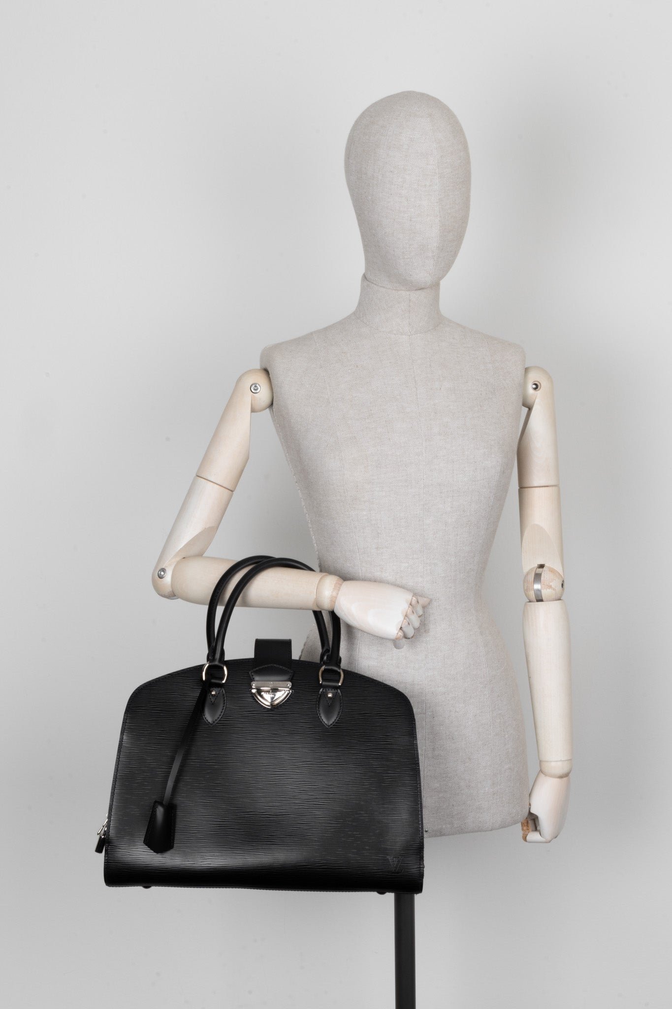 Die Louis Vuitton Pont Neuf GM in schwarzem Epi-Leder ist eine zeitlose und elegante Handtasche, die mit ihrem strukturierten Leder und minimalistischen Design punktet. Sie ist geräumig und bietet Platz für alle wichtigen Utensilien des Alltags. Die verstärkten Henkel ermöglichen bequemes Tragen in der Hand oder am Arm, während die silberfarbenen Details einen edlen Akzent setzen.