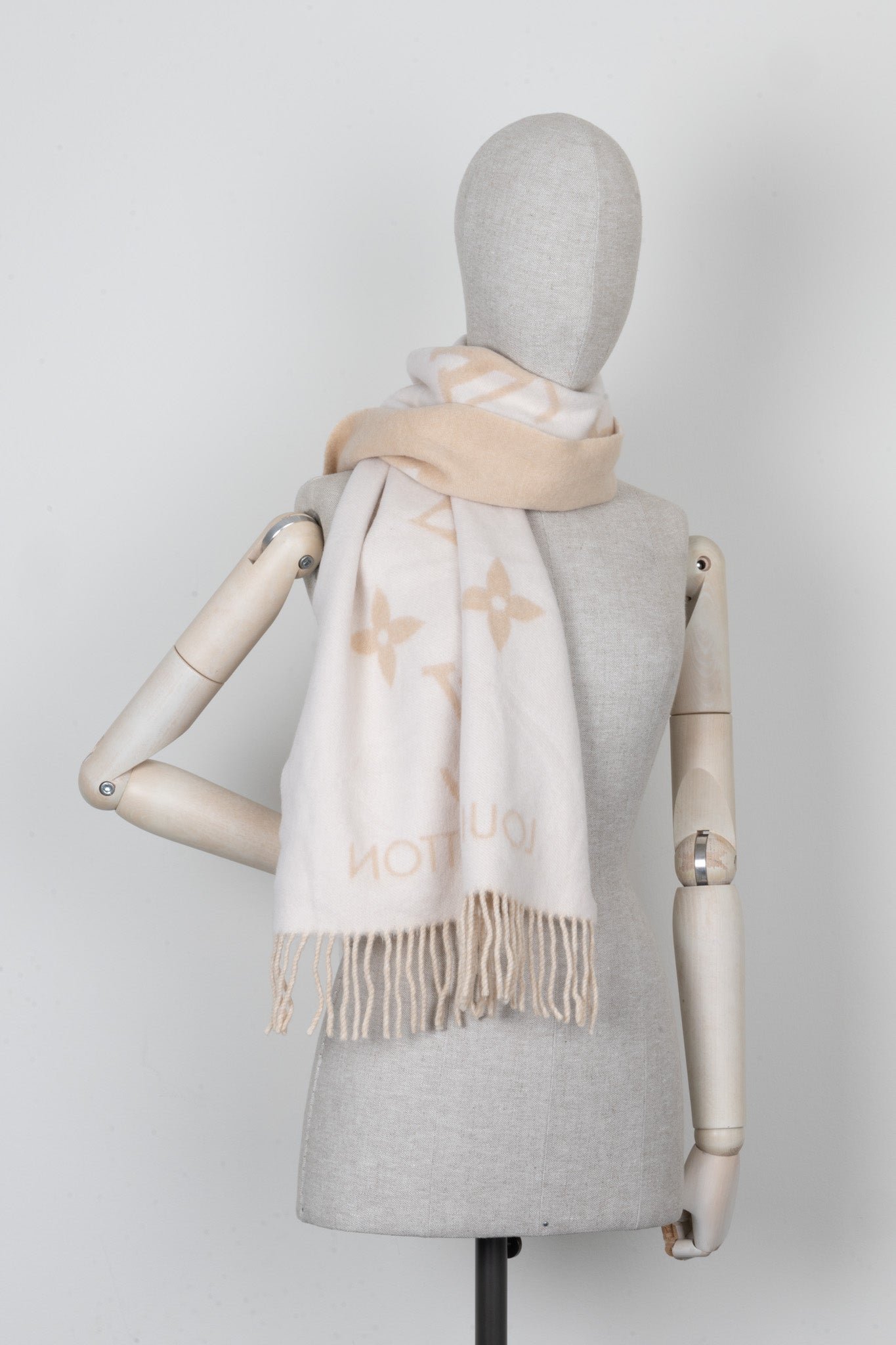 Der Louis Vuitton Schal aus Kaschmir in Beige steht für schlichte Eleganz und luxuriösen Komfort. Das weiche, hochwertige Material sorgt für ein angenehmes Tragegefühl und macht ihn zu einem vielseitigen Begleiter für kalte Tage. Seine dezente Farbgebung und das ikonische Monogram Muster passen perfekt zu verschiedenen Looks und unterstreicht die zeitlose Ästhetik von Louis Vuitton.