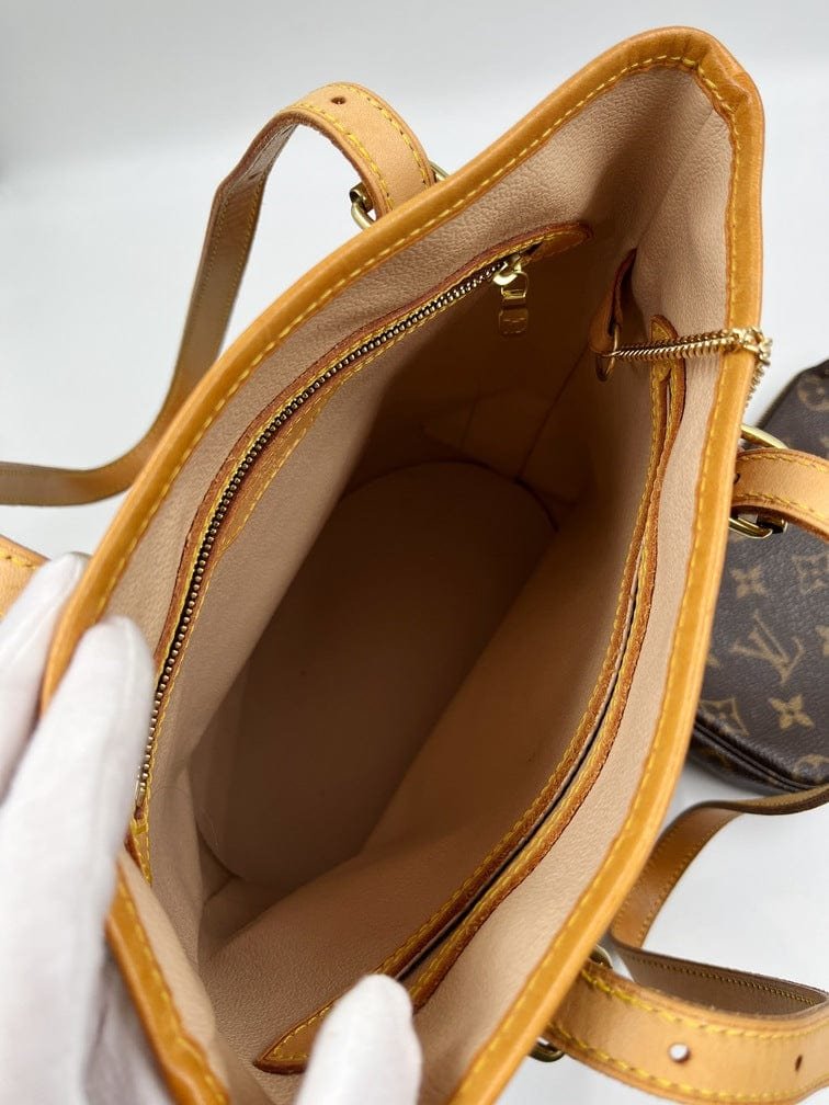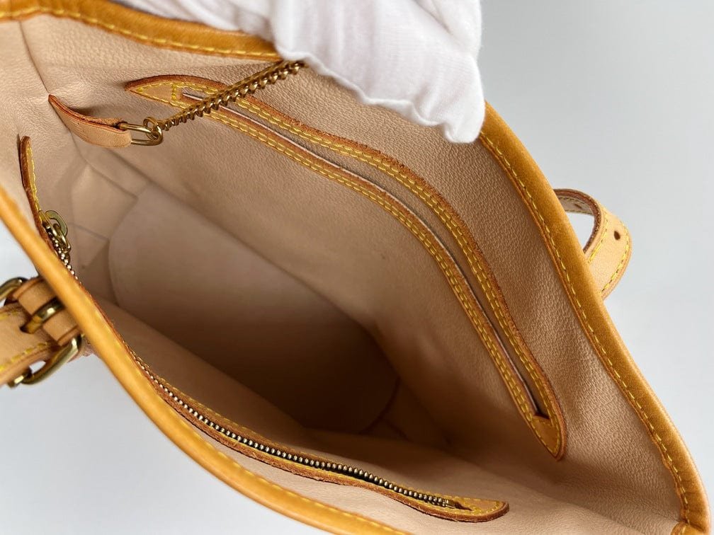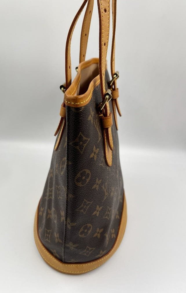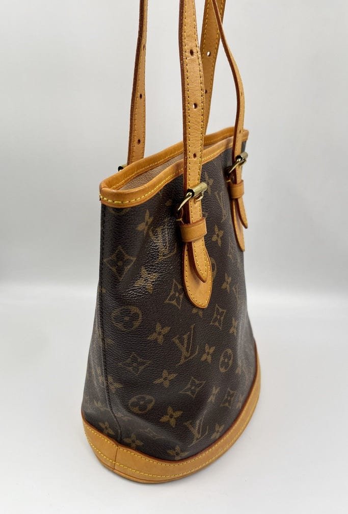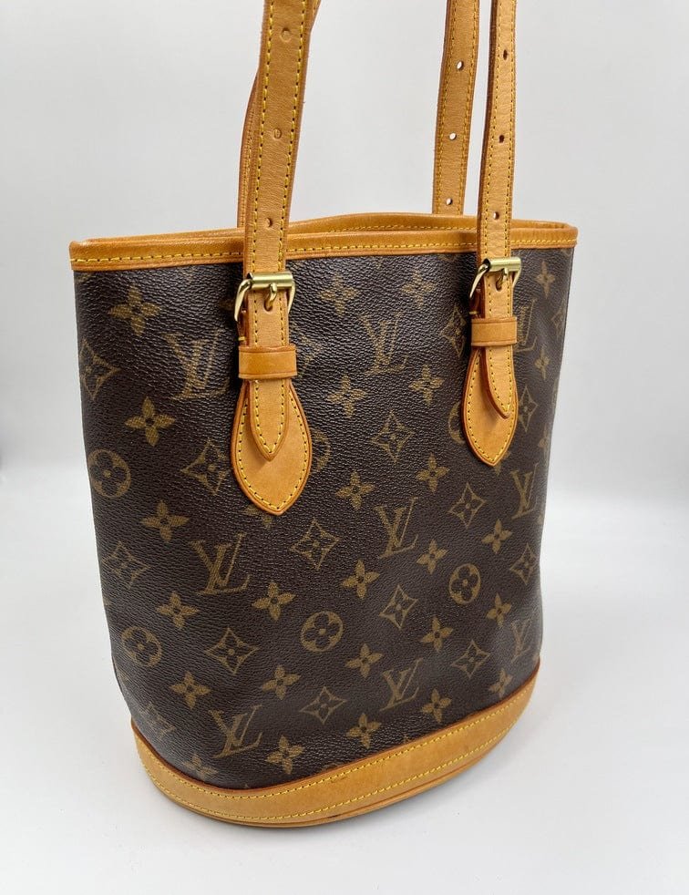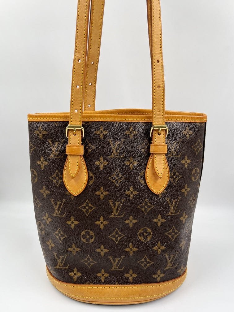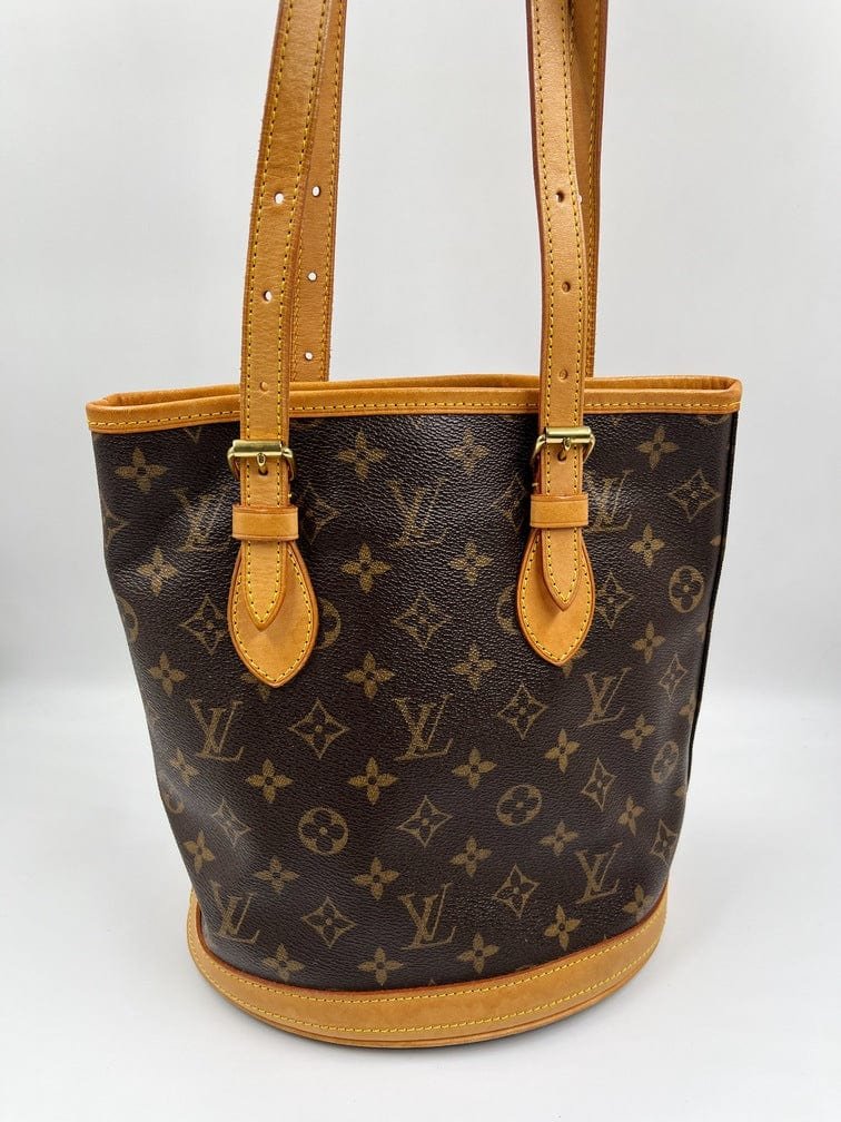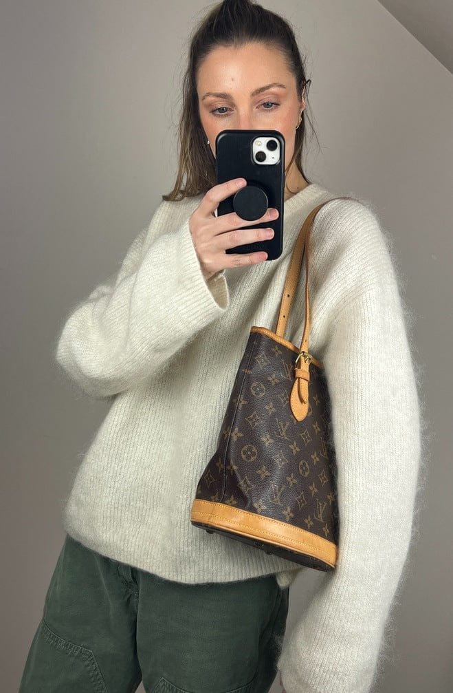 The Louis Vuitton Bucket tote bag is a fabulous portrait style tote with a round circular base. Made from the classic Louis Vuitton canvas.