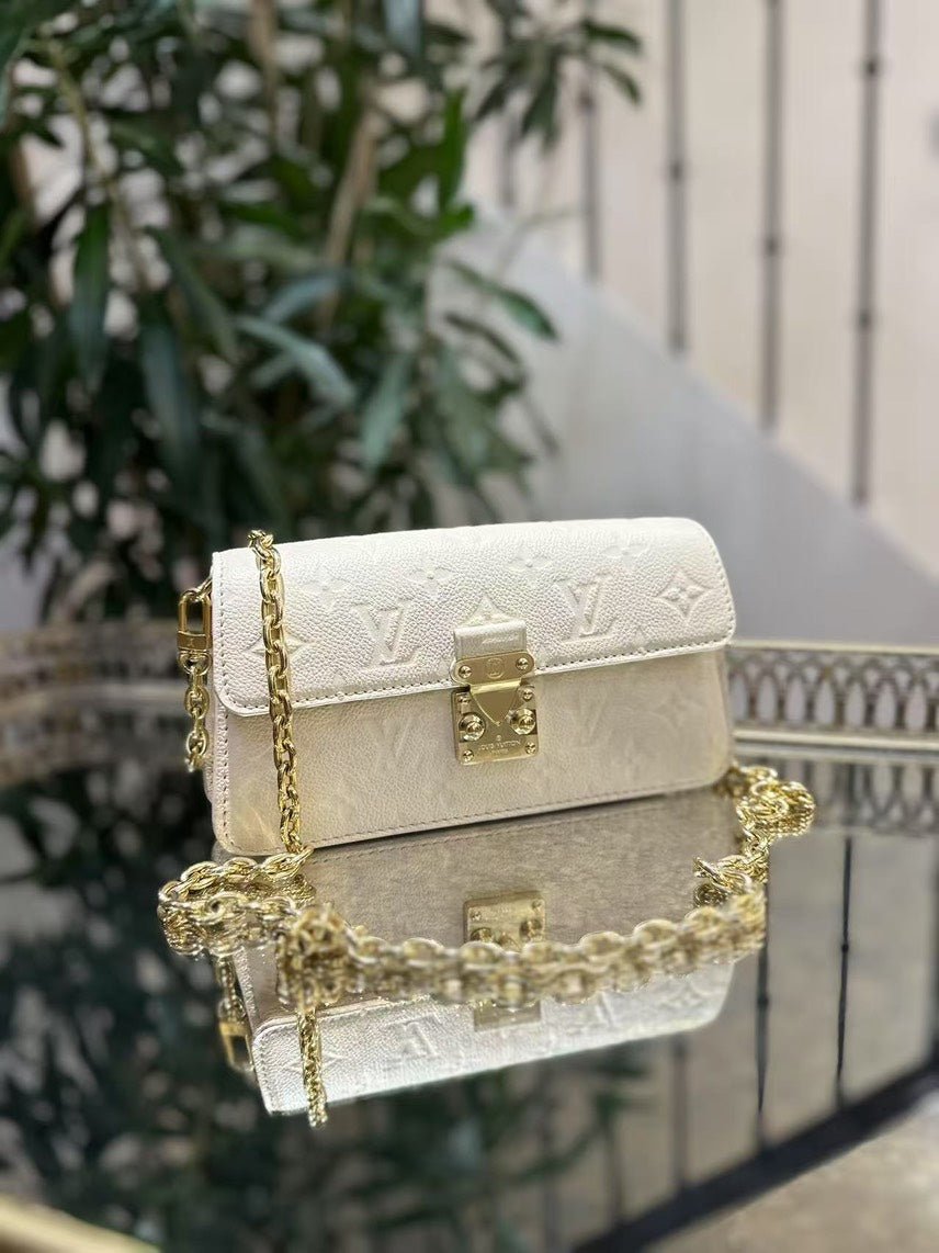 This authentic used Louis Vuitton Monogram Empreinte Clair Beige Shoulder Bag offers the perfect blend of luxury and practicality. Crafted from iconic monogram leather, it features a chic gold chain strap for added elegance. The spacious interior is ideal for organizing essentials. Whether you’re a collector or simply love vintage Louis Vuitton bags, this piece is a standout among used designer handbags.