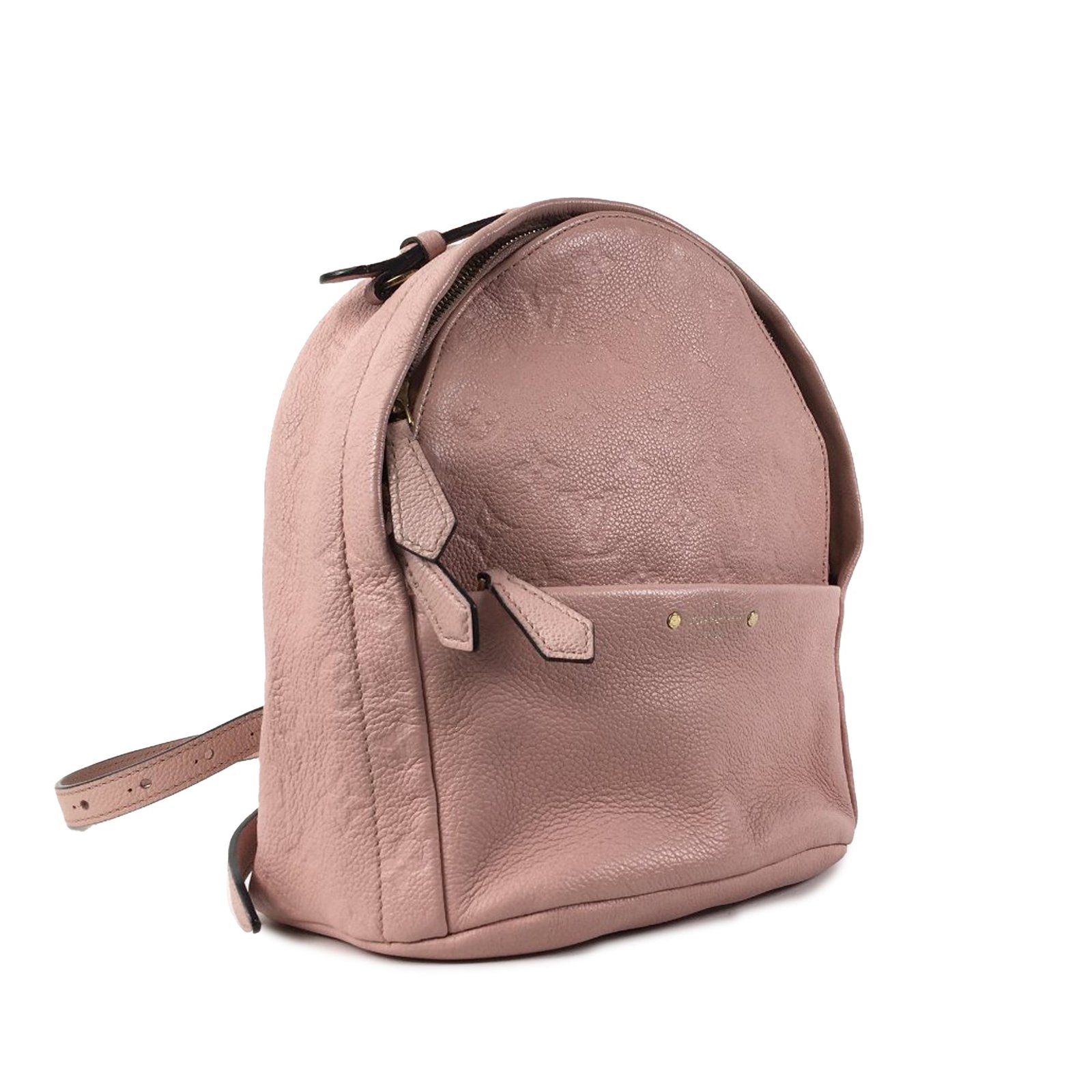 The Sorbonne features a monogram empreinte body, a front exterior zip pocket, a flat leather top handle, flat back straps, a top zip closure, and interior zip and slip pockets.
