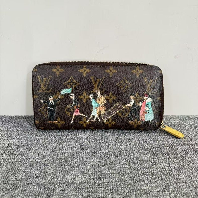 This is an authentic LOUIS VUITTON Monogram Clutch. This stylish clutch is crafted of Louis Vuitton’s iconic monogram canvas, accented with whimsical illustrations of figures. It features a zip-around closure with gold-tone hardware. The compact size and chic design make it ideal for both day and night use, effortlessly adding a touch of luxury to any ensemble.
