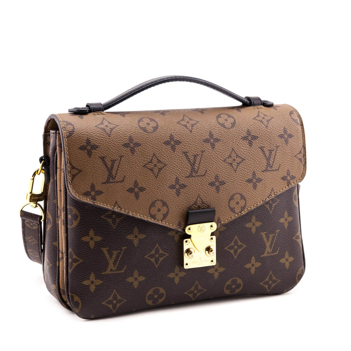 Offering contemporary twists on the luxury fashion house’s most classic signatures, this Louis Vuitton Pochette Metis gives other designer handbags a run for their money. The structured body of this preBlara Bagsd luxury satchel is constructed of a durable coated canvas, with a mixture of the classic brown LV monogram featured at the front wall and the Reverse Monogram at the rear wall and flap. The classic colorway known to Louis Vuitton handbags is completed with gold-tone hardware, black glazing, and yellow contrast-stitching visible throughout. Stay organized while on-the-go via the rear exterior zippered pocket. A black flat leather top handle enables toting in hand, while the detachable flat strap can be adjusted to wear crossbody, or on-shoulder. Secure your belongings in the black microfiber-lined interior by anchoring the flap in the front’s push-lock closure. Separated into two gusseted compartments by a partition wall, the spacious interior features one large slip pocket at the latter section’s rear wall. This Louis Vuitton Monogram Reverse Pochette Metis bridges the gap between an unmissable statement and unlimited versatility.