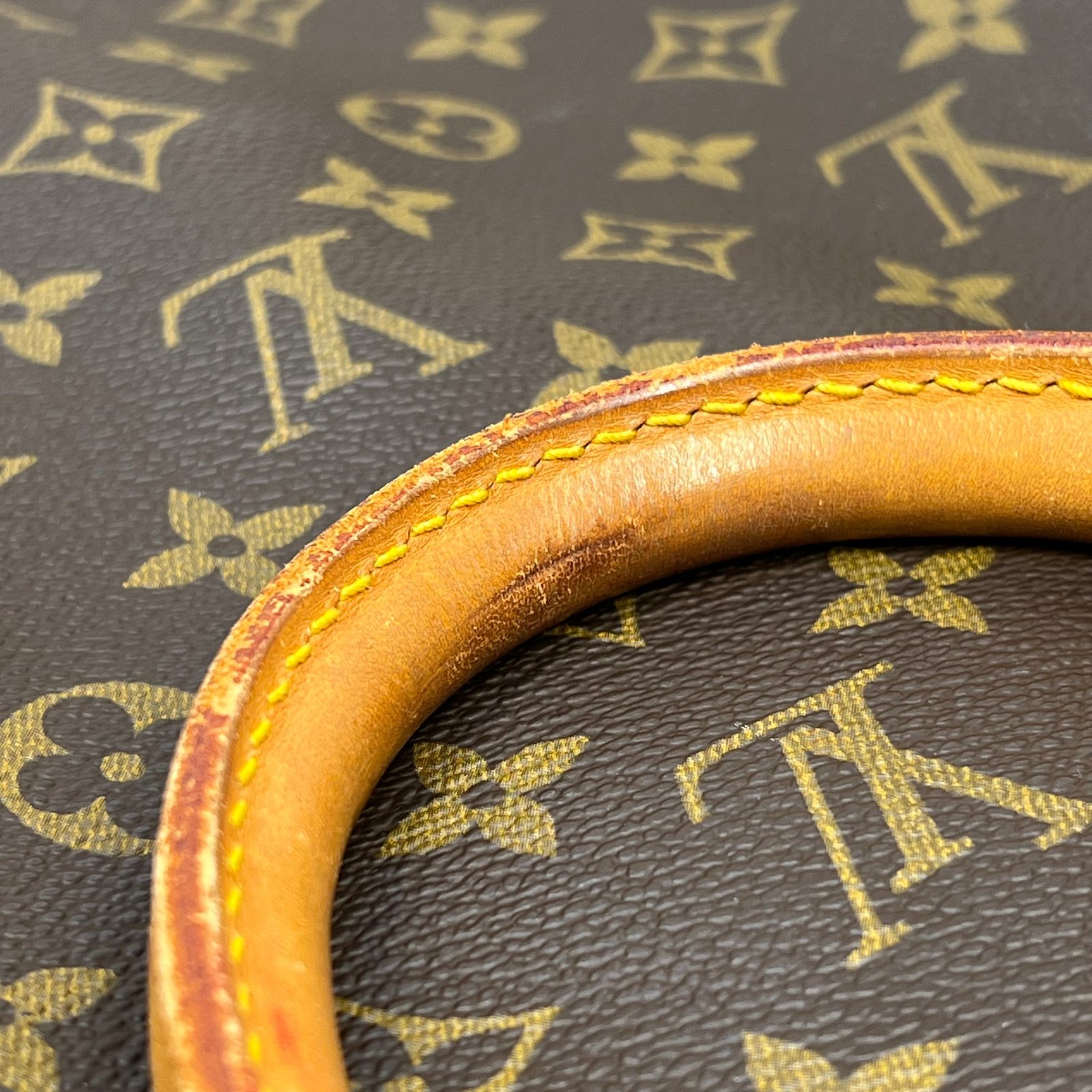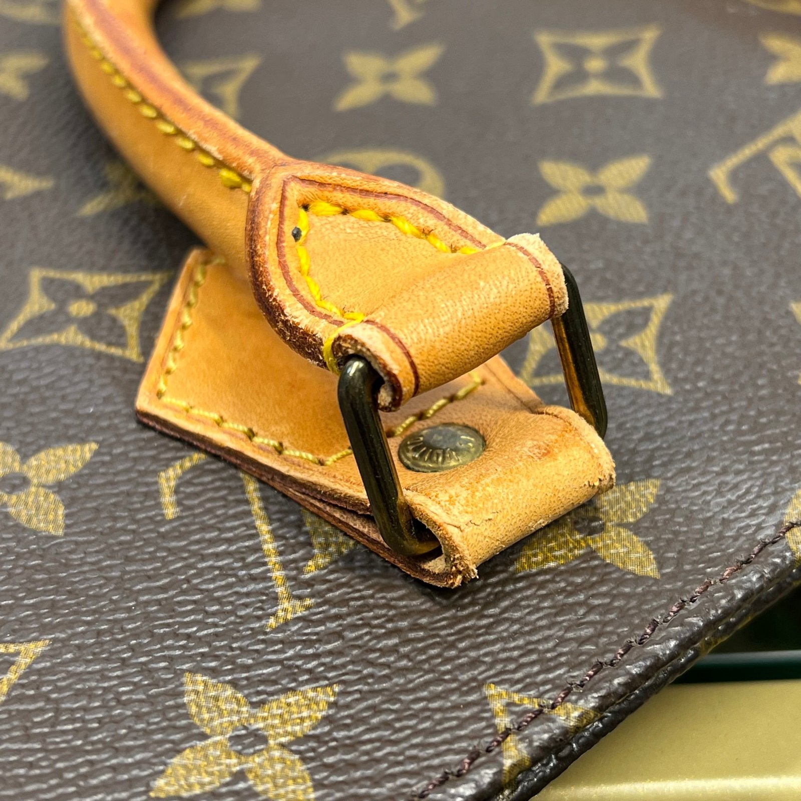 - Handle: The vachetta has developed a deep honey color appearing darker towards the top with heavy scratches, rubbing, scuffing, water/oil spots, pen mark, splitting and gentle peeling.