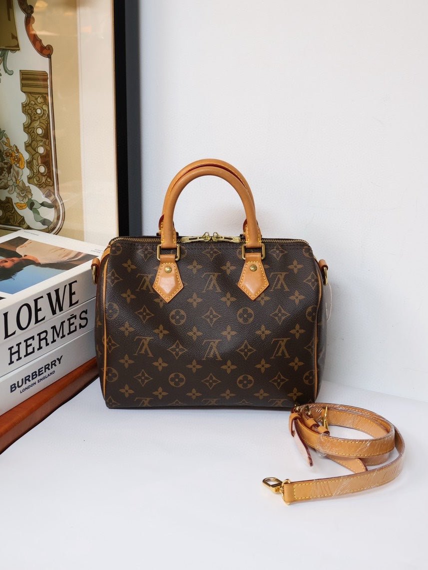 This authentic used Louis Vuitton Monogram Speedy 25 with Strap is an iconic piece perfect for the discerning collector of vintage Louis Vuitton bags. Skillfully crafted in the brand’s timeless monogram canvas, this top handle bag combines elegance with functionality. Its leather handles and detachable strap offer versatile carrying options, while the spacious interior is ideal for daily use. Whether you’re a collector or simply love used designer handbags, this piece is a must-have addition to your collection.