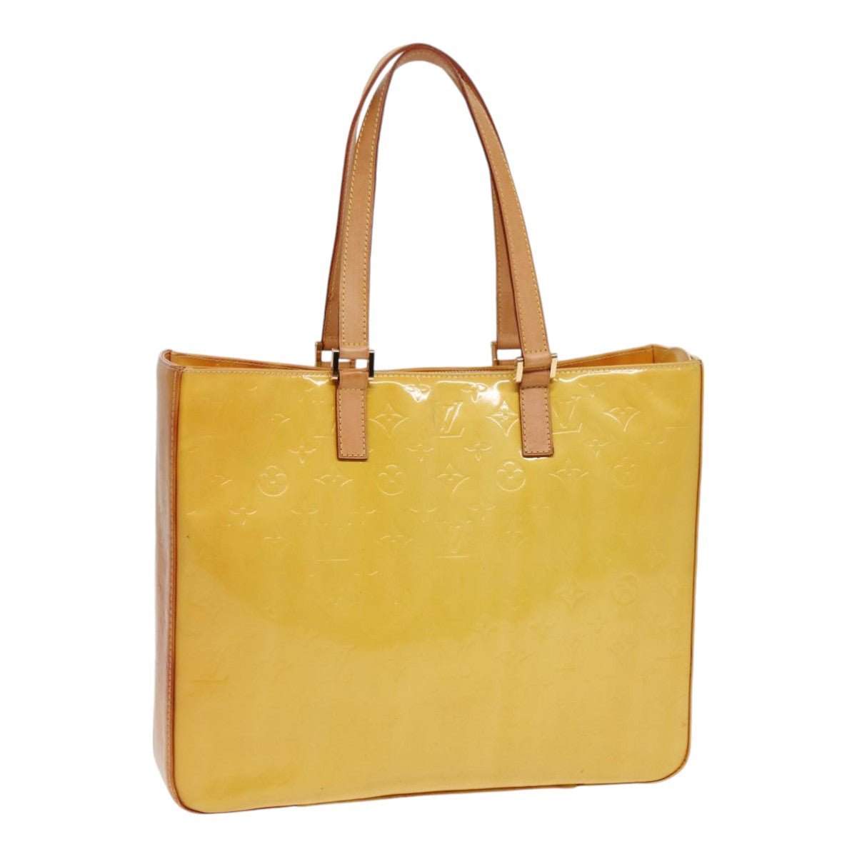 LOUIS VUITTON Monogram Vernis Columbus Tote Bag Lime Yellow M91047 LV Auth 87528