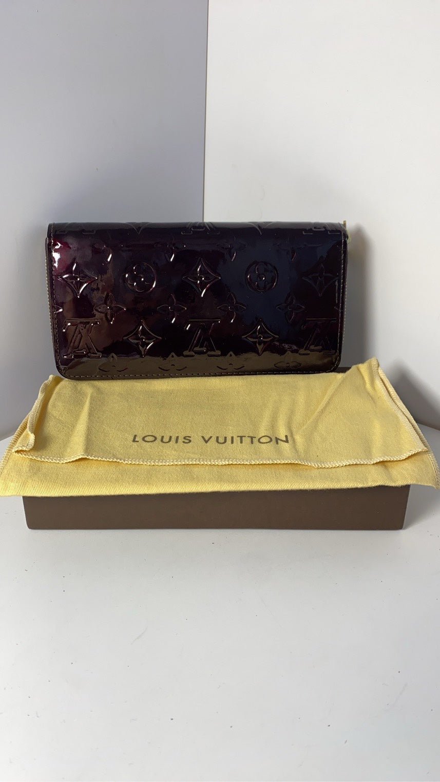 This authentic used Louis Vuitton Monogram Vernis Patent Wallet is a chic and functional choice for vintage Louis Vuitton bags enthusiasts. Crafted in elegant Amarante patent leather, the wallet embodies luxury with its monogram pattern and ample interior compartments. Ideal for collectors or those who love used designer handbags, it comes complete with its original box.