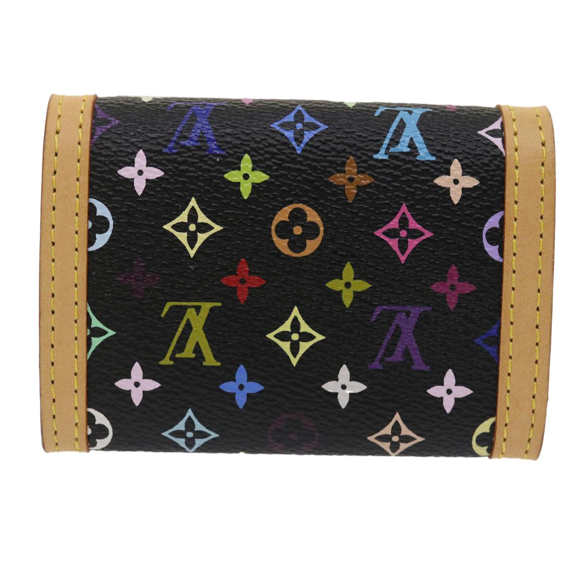 LOUIS VUITTON Multicolor Porte Monnaie Plat Coin Purse Black M92656 Auth ar6950