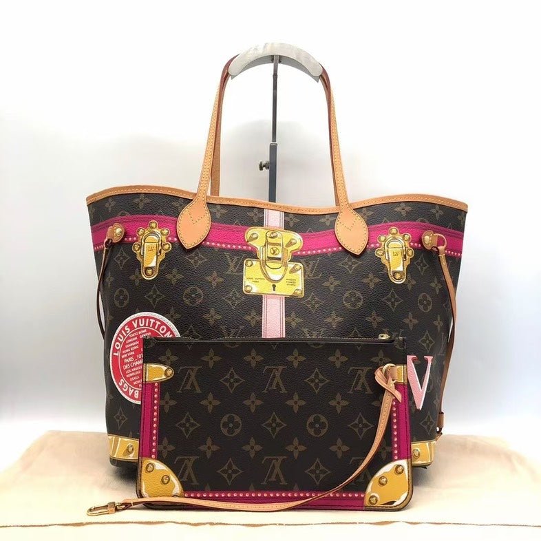 Louis Vuitton Neverfull Monogram Canvas Tote Bag Pink Trim Medium | AlmaBagz