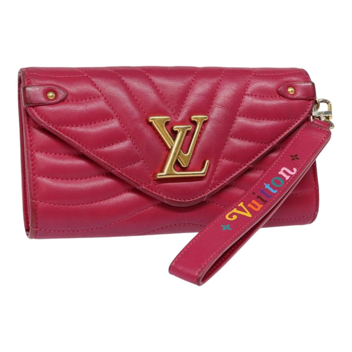 LOUIS VUITTON New Wave Long Wallet Leather Pink M63820 LV Auth 88061