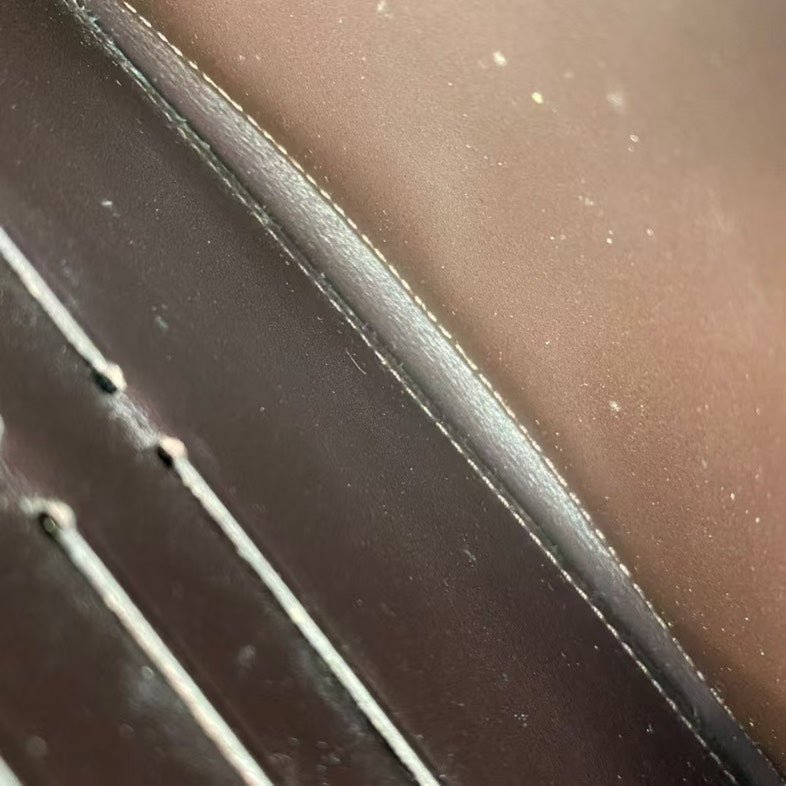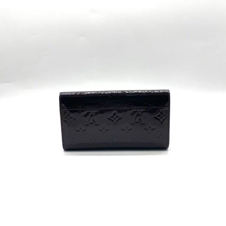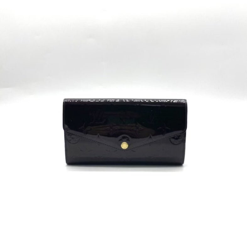 Add a touch of elegance to your essentials with this Louis Vuitton patent leather wallet. Crafted with the iconic LV monogram, this small yet spacious wallet is perfect for any occasion. The sleek black exterior and gold hardware offer timeless style, while the leather interior ensures durability. Experience luxury with every use.