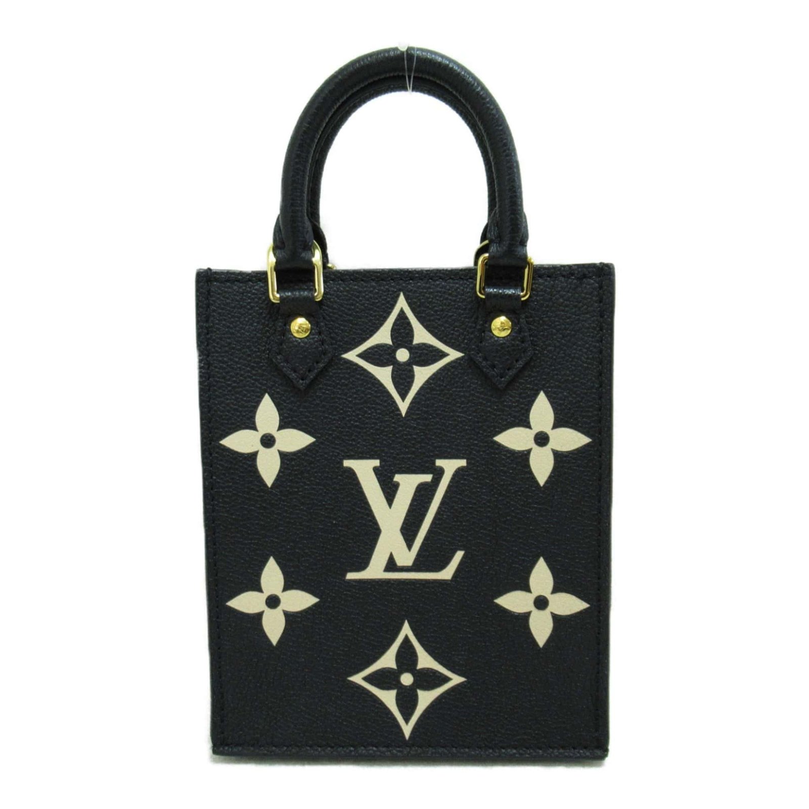 LOUIS VUITTON Petit Sac Plat Shoulder Bag Black Beige Monogram empreinte leather M81416