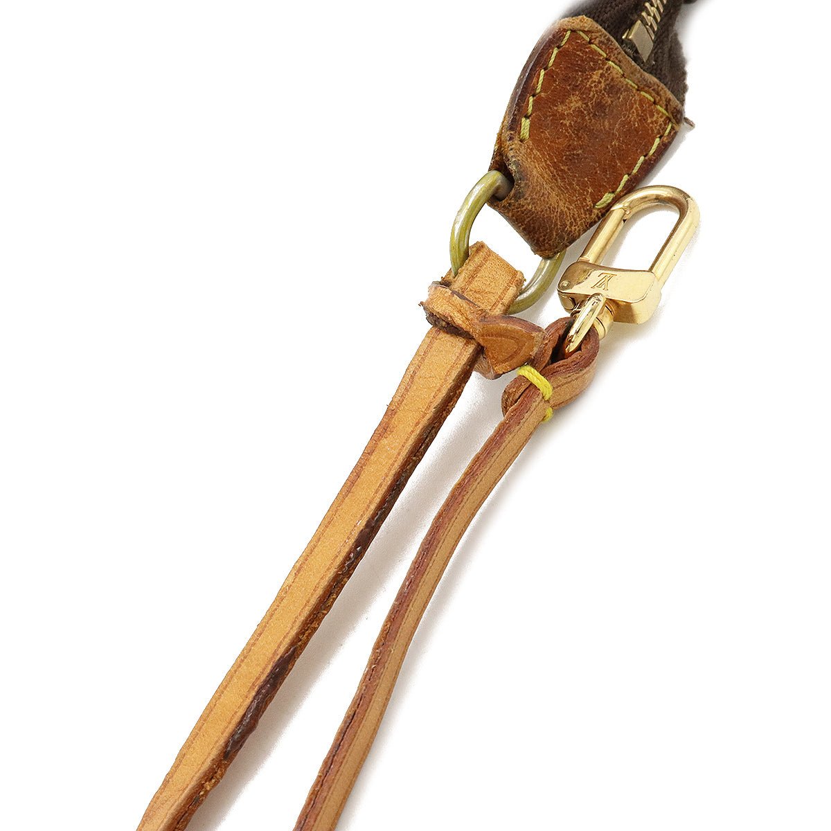 Introducing the Louis Vuitton Monogram Pochette Accessory M51980. It is crafted with precision and attention to detail, featuring a durable and easy-to-maintain canvas exterior, a gold-tone zipper closure, and a detachable leather wrist strap for added convenience. This pochette is a versatile addition to any wardrobe, suitable for various occasions, from casual outings to formal events.