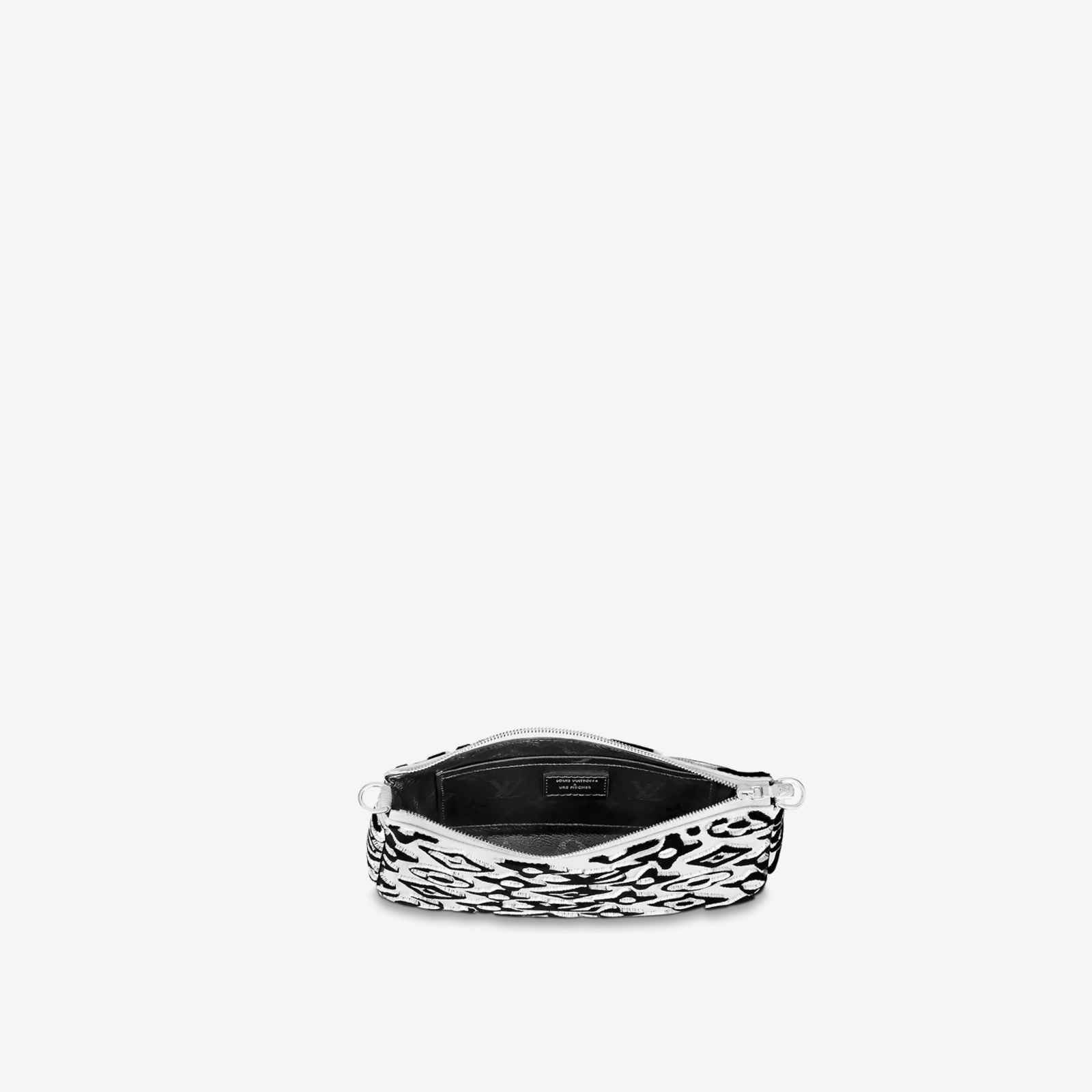 Characteristics:  This special edition of the Pochette Accessoires handbag is arrayed in the arty new version of Monogram, reimagined by Urs Fischer for the exclusive LV x UF collection. The velvety tufted motif gives the bag a unique tactile appeal, whether on its long shoulder strap or carried by the delicate chain for evening.