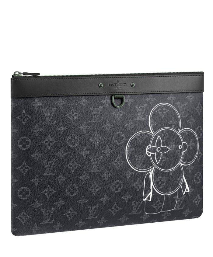 Louis Vuitton’s Vivienne mascot makes a playful appearance on the Pochette Apollo in Monogram Eclipse canvas, bringing a fashionable twist to this sleek document wallet. Featuring coordinating green and black hardware, the Pochette Apollo can be carried in the hand as a clutch, or slipped inside another bag.