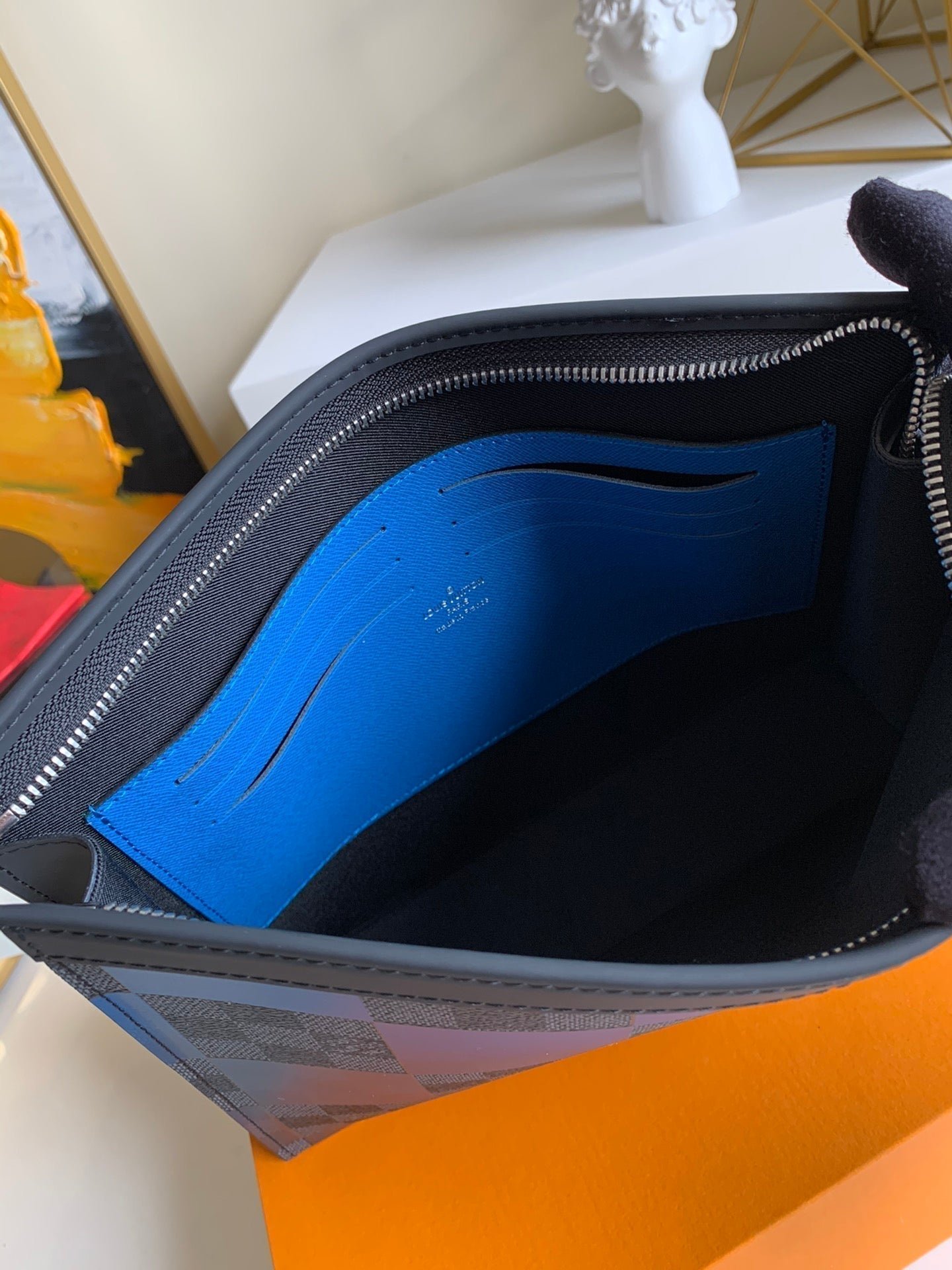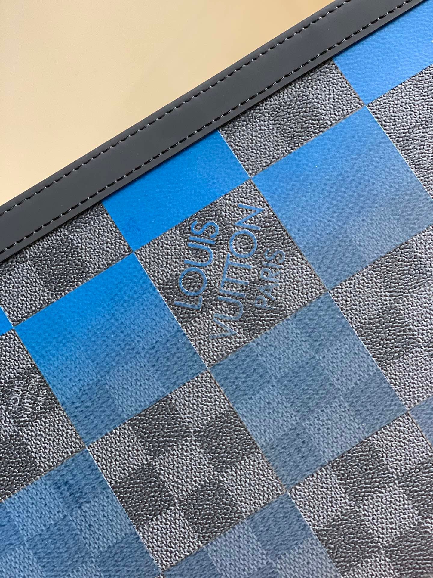 The Pochette Voyage has been updated with Damier Graphite Giant canvas, a new take on the House’s classic checked pattern in handsome shades of blue. Easy to hand-carry or slip into a suitcase, it’s a versatile travel accessory – a smart and stylish way to pack cash, cards, a phone and other small necessities.