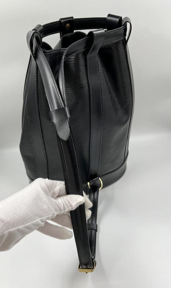 The bag features a drawstring closure and solid base. Perfect for work, school, or travel, you can carry it traditionally, or double-up its straps and sling it over one shoulder. The Louis Vuitton Randonnee bag is no longer in production at Louis Vuitton, so what are you waiting for? … we did the searching for you!