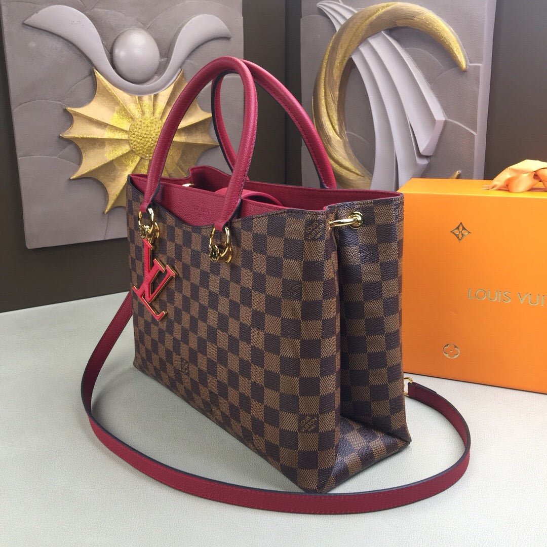 Combining practicality with elegance, the LV Riverside tote is an ideal work-to-weekend accessory. It is crafted from Damier Ebene canvas with intricate details constructed from grained Taurillon leather. The twin Toron handles feature gold-finished mounts, with an LV charm in Epi-textured resin adding a signature flourish.