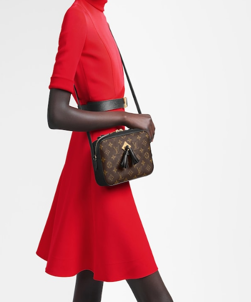 Monogram canvas and smooth leather combine in the Saintonge, a compact bag with a youthful vibe. The colored leather lends contrast and volume to the design, while the tassels add a playful touch. Sized to fit daily essentials, this fashionable model can be carried by the supple top handle or suspended from the long shoulder strap.