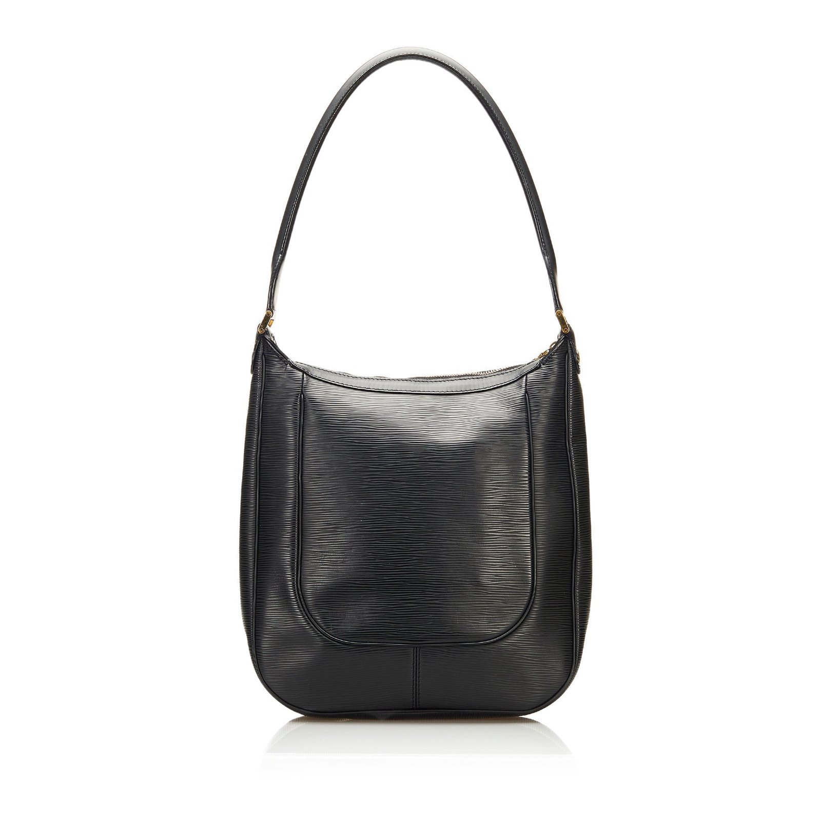 This Louis Vuitton Salabha was made from black epi leather. The Bag features gold details, a zipper at the top opening, a slip pocket on the front and a slip pocket inside. The Bag is best over the shoulder.