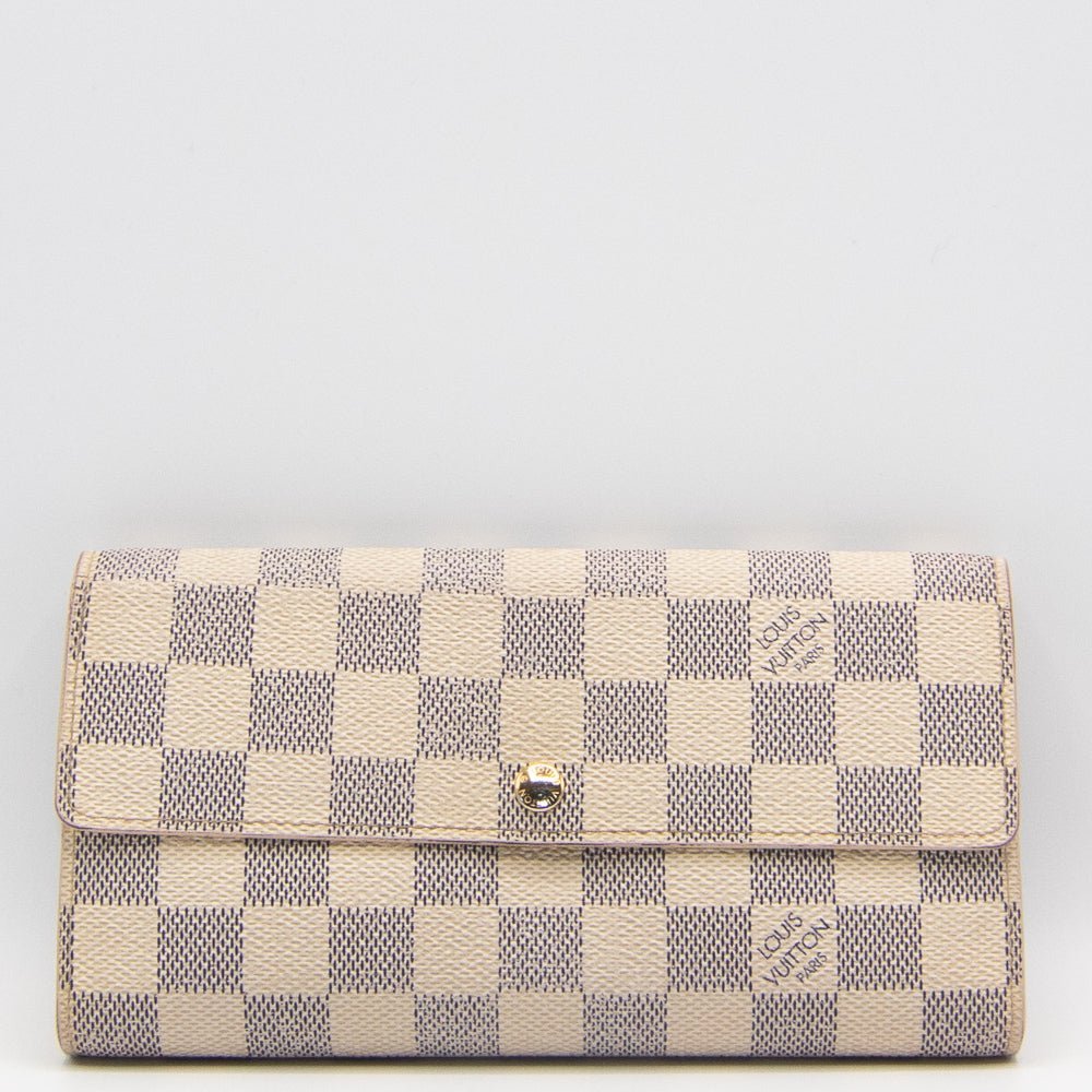 Louis Vuitton Sarah wallet in Damier Azur canva.