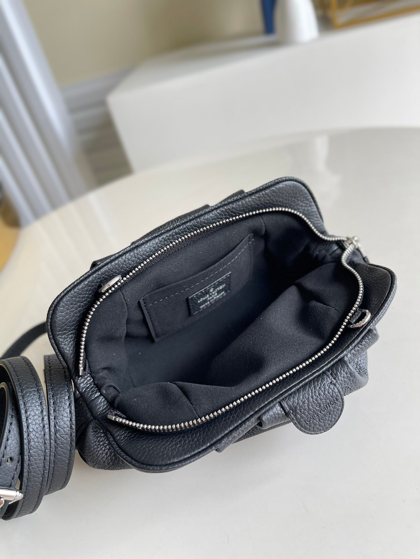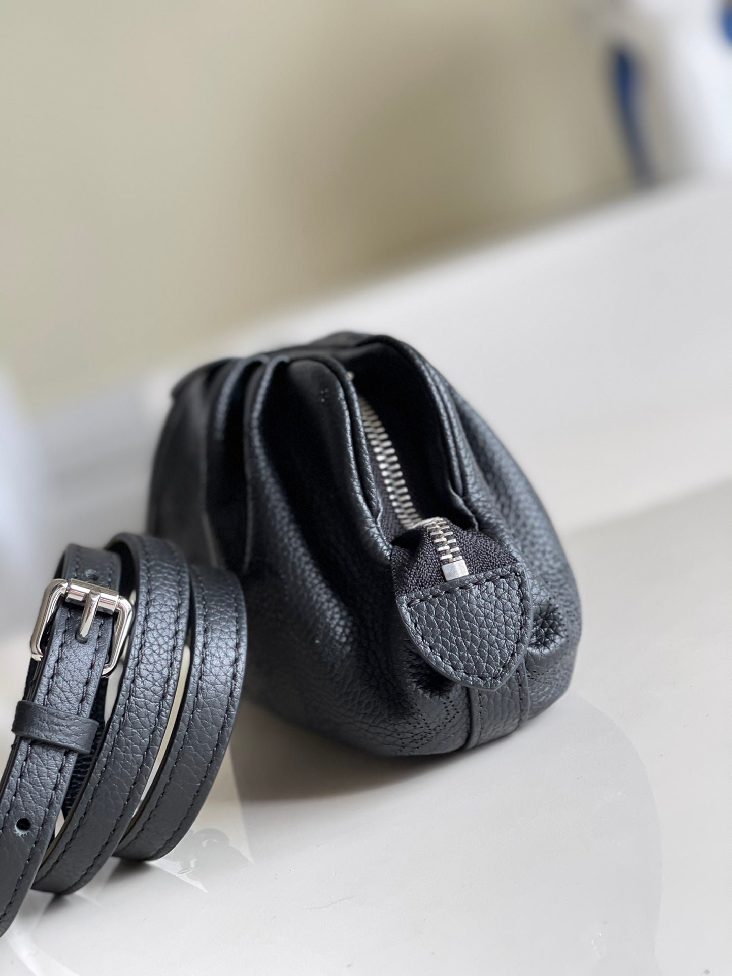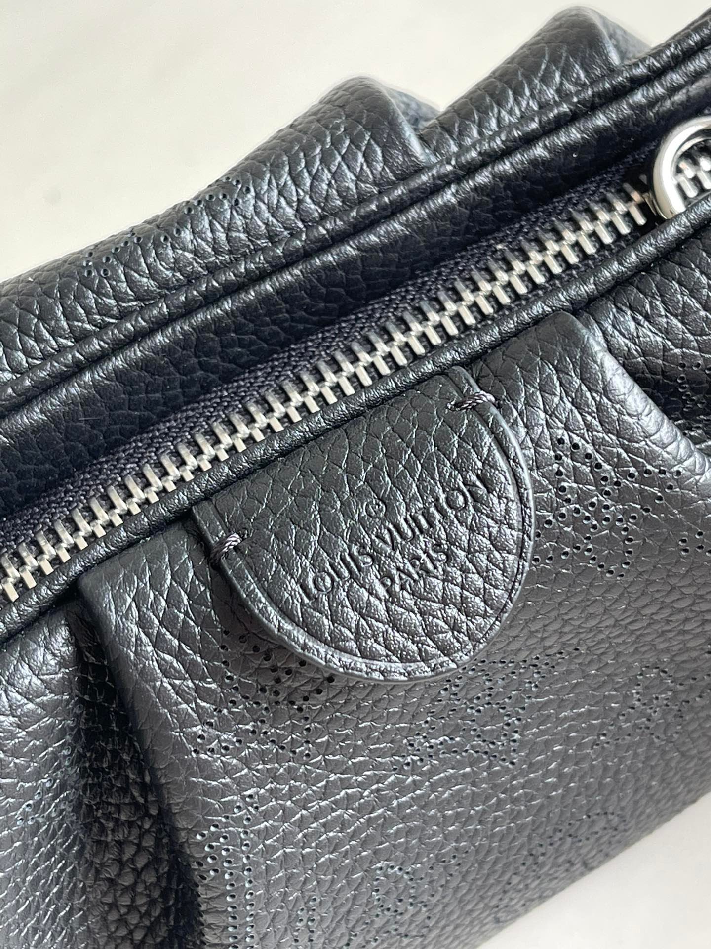 The Scala mini pouch has a soft, body-friendly shape inspired by the folds and pleats of drapery. It is crafted from supple Mahina calf leather, whose delicate perforations replicate Louis Vuitton’s iconic Monogram pattern. Large enough to hold everyday essentials, it has a removable, adjustable strap, enabling it to be carried in several different ways.
