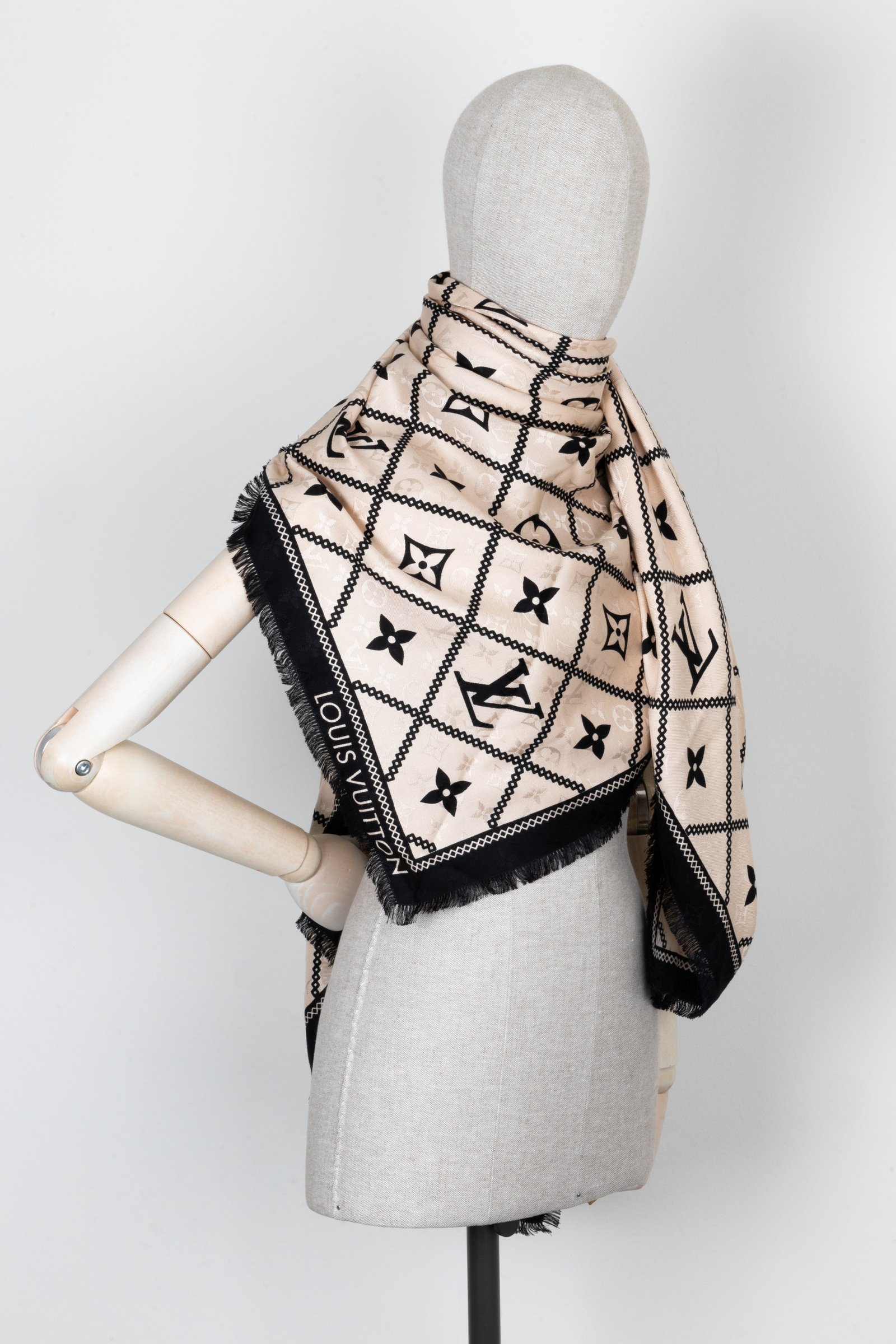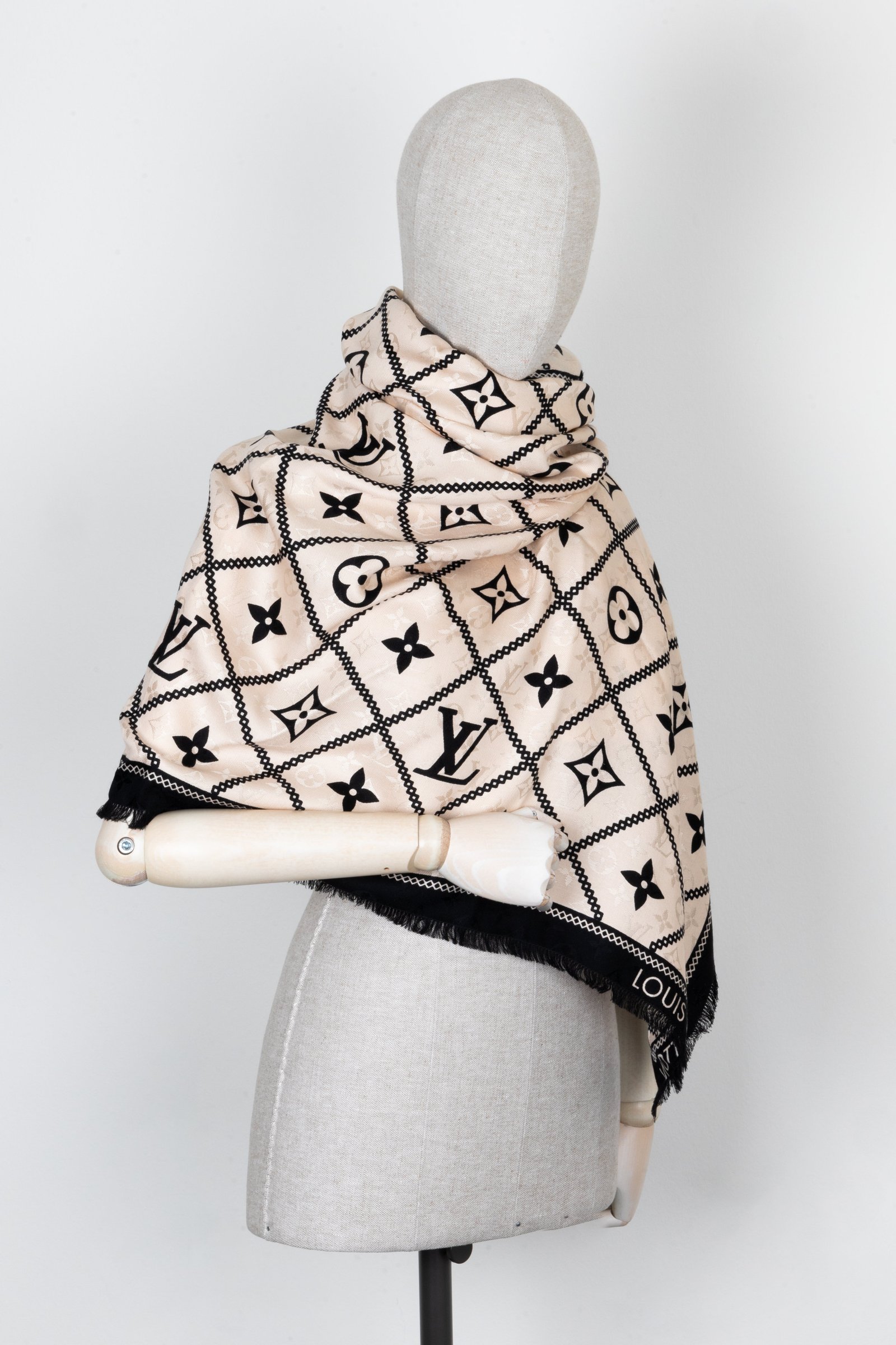 LOUIS VUITTON Scarf MNG Silk Wool Black Beige | AlmaBagz