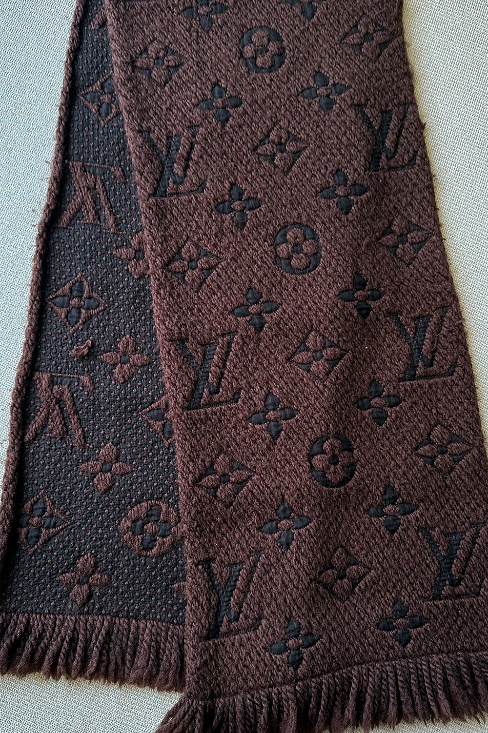 LOUIS VUITTON Scarf Wool MNG Brown Black