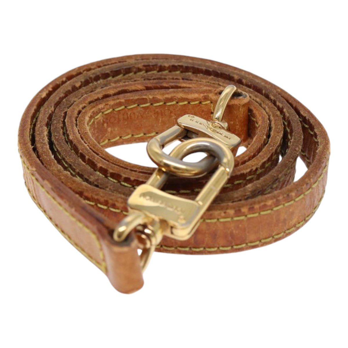LOUIS VUITTON Shoulder Strap Leather 35.8′ Beige LV Auth 87468