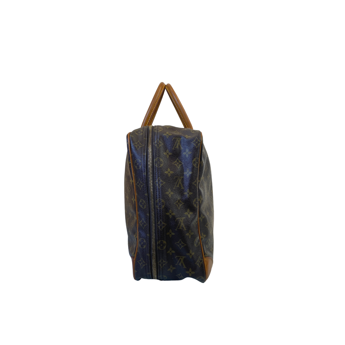Louis Vuitton Sirius 45 in Monogram Canvas with Vachetta leather details and two practical cowhide handles, also known as “Toron” handles. The bag has gold-colored hardware and two-way zip closure. The inside contains one large slip-in pocket and an elastic band to protect your clothes. The data code can be found on a small leather piece on the inside. This bag is the perfect travel bag and also for work. This bag comes with an original luggage tag and handles buckle. The overall condition of the bag is good considering the canvas and the Vachetta leather. On the inside, there are some stains. This item comes with an ity card from our store. This item can be found in our store at Nieuwe Spiegelstraat 27 in Amsterdam or can be purchased directly via our webshop.