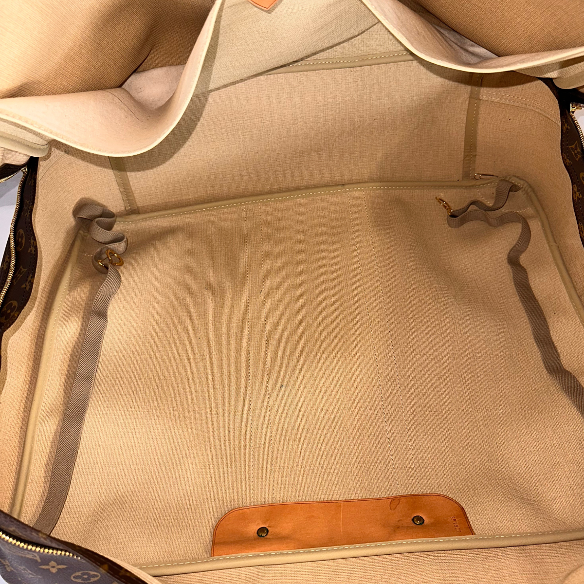 Louis Vuitton Sirius 55 in Monogram Canvas with Vachetta leather details and two practical cowhide handles, also known as “Toron” handles. The bag has gold-colored hardware and a two-way zip closure. The inside contains one large slip-in pocket and an elastic band to protect your clothes. This bag is the perfect travel bag and also for work. This bag comes with an original luggage tag and handles buckle. The overall condition of the bag is good, but it shows some signs of usage. There are some stains and little scratches on the Vachetta leather, but besides that, this bag looks very neat. This item comes with an ity card from our store. This item can be found in our store at Reestraat 24 in Amsterdam or can be purchased directly via our webshop.