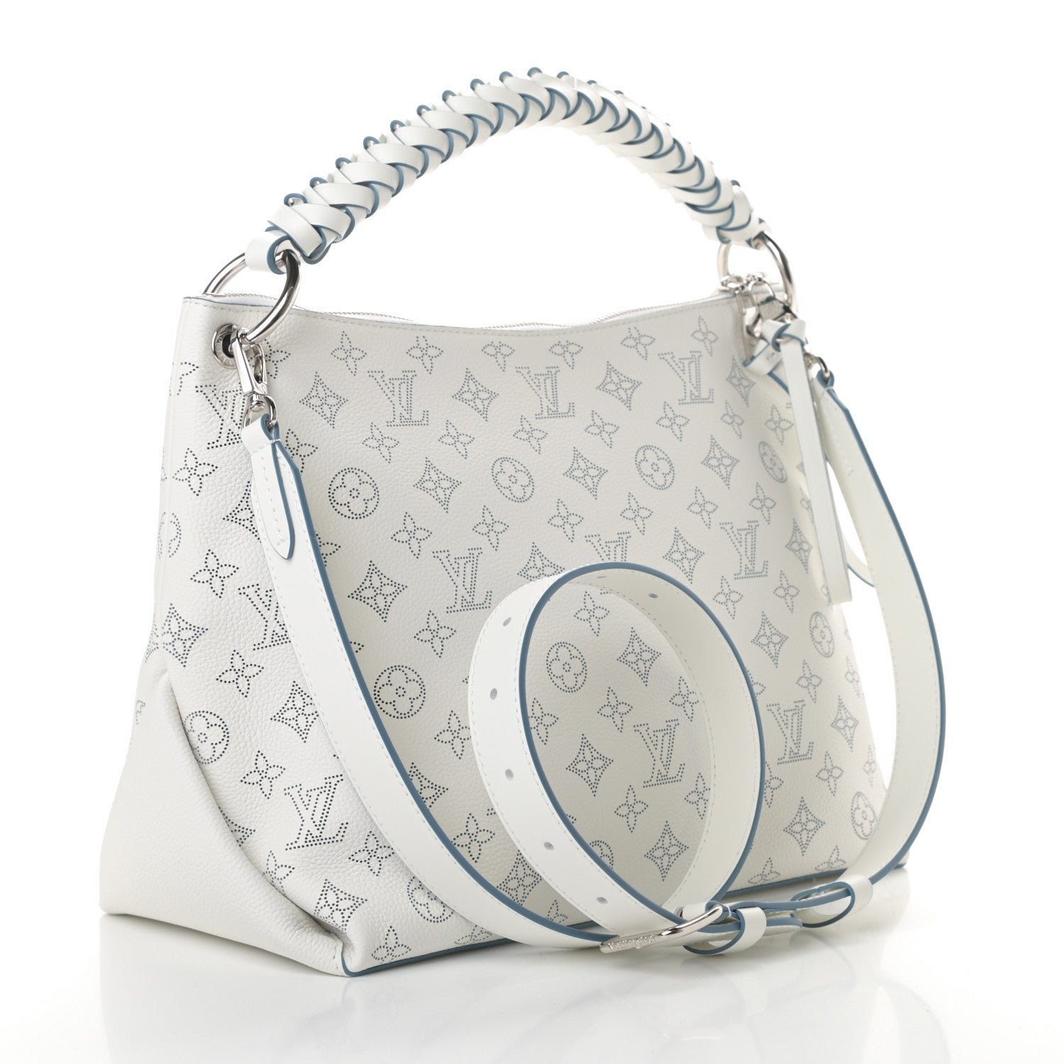Louis Vuitton Snow Beaubourg Hobo MM in White Monogram Mahina Leather with Silver Tone Hardware,
