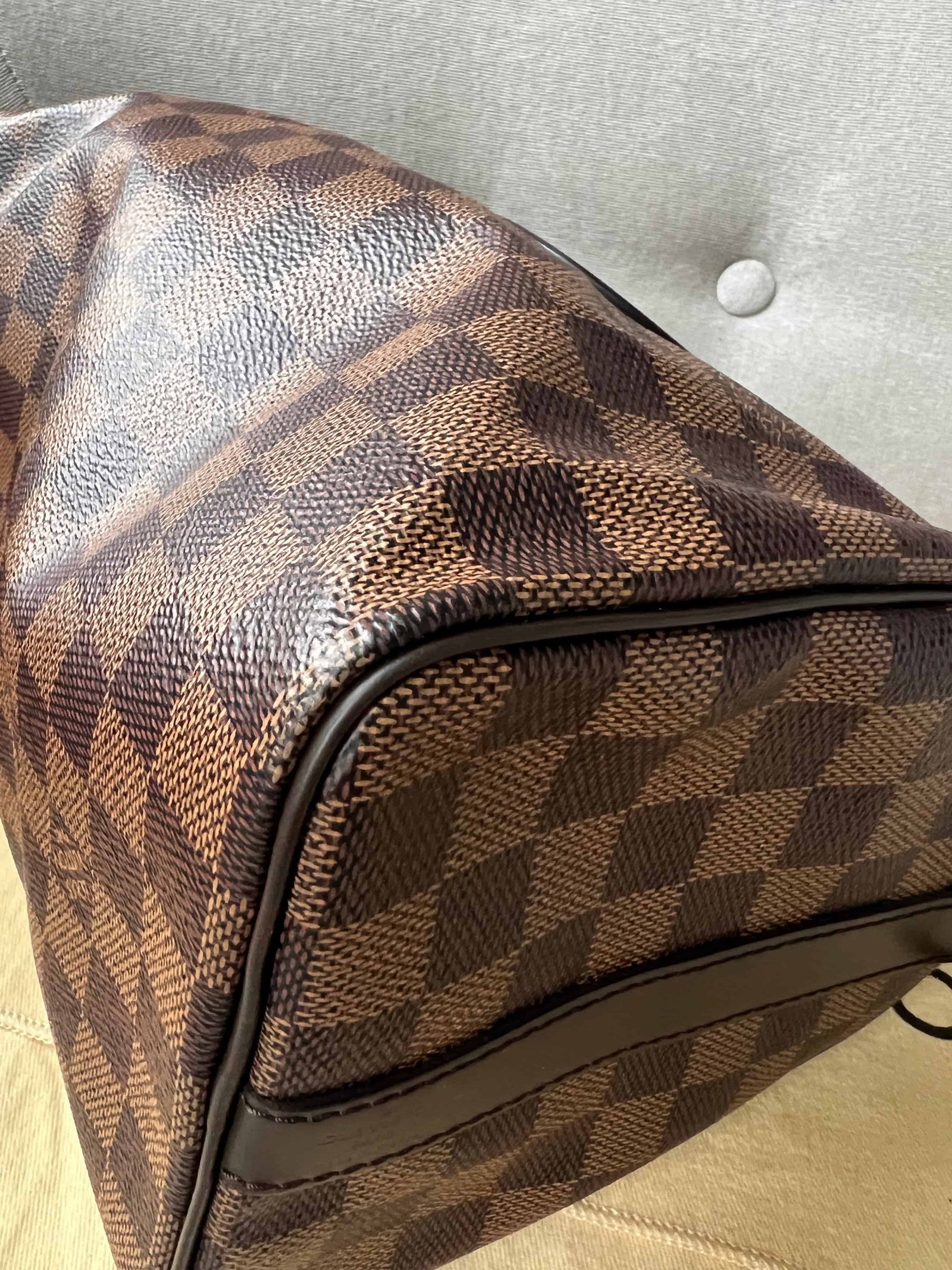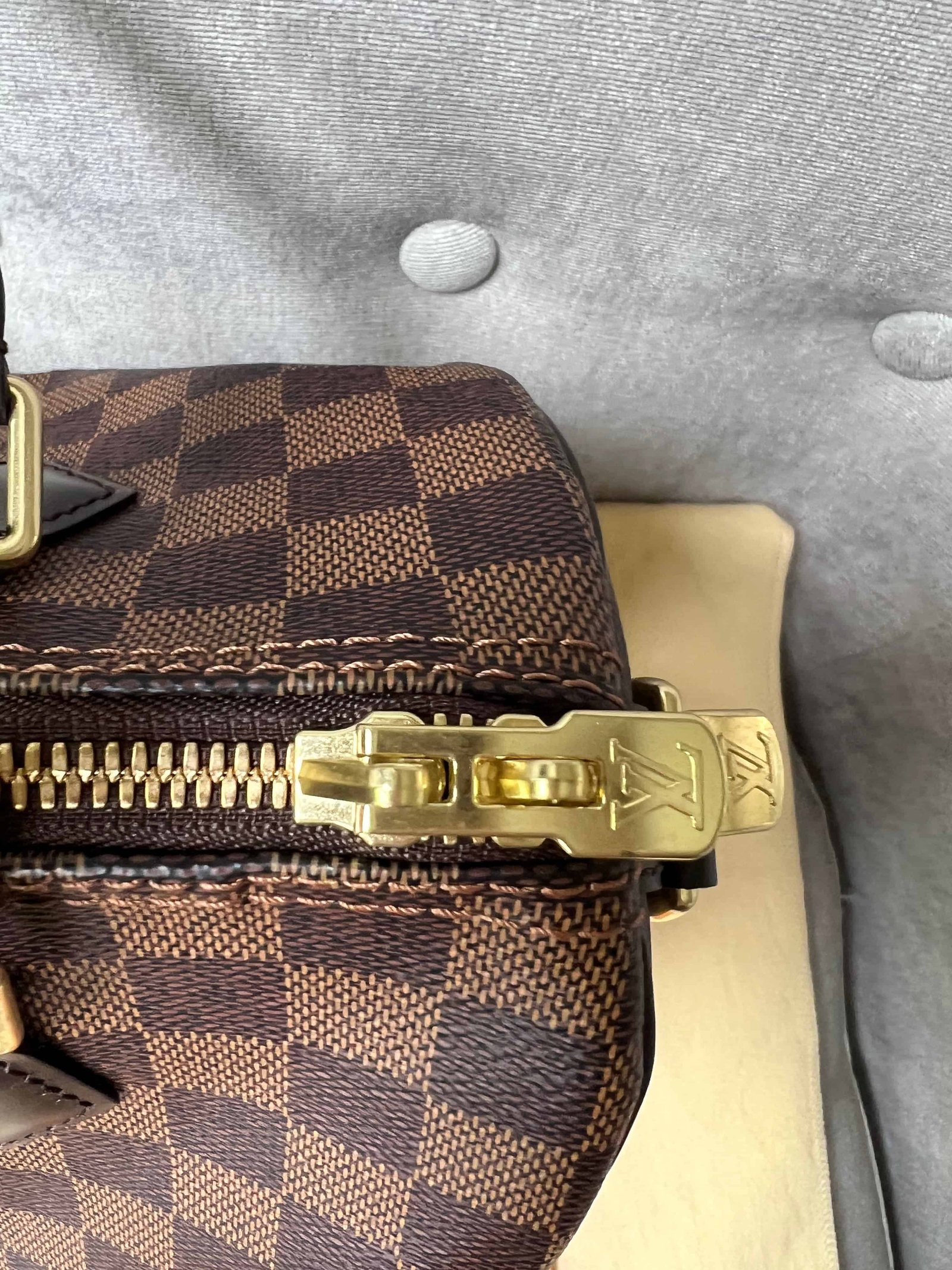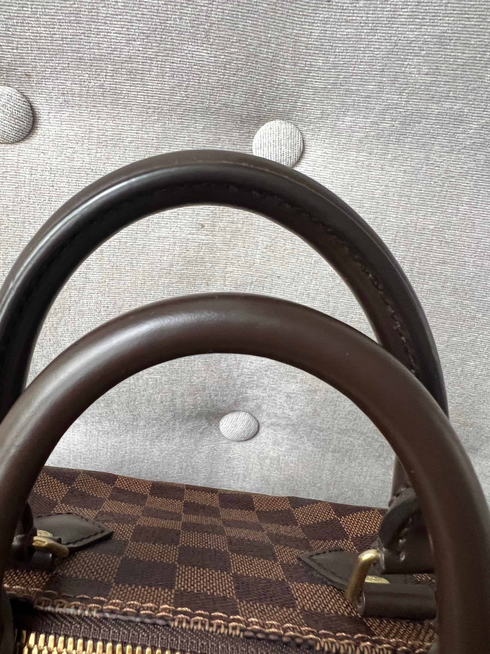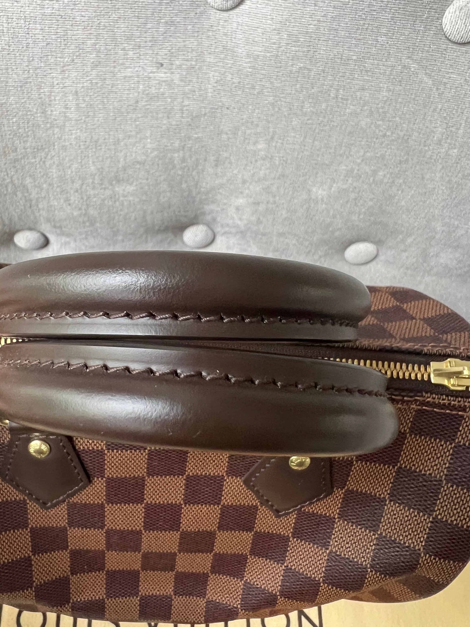 Louis Vuitton Speedy 25 Bandouliere in Damier Ebene canvas with gold hardware. Note the long strap is missing. The classic speedy Bandouliere style is one of Louis Vuitton’s most popular styles and is often sold out online and in store. This style is timeless and elegant and is perfect for day to day use. Slightly slouchy in shape, the Speedy features rolled leather handles and signature padlock together with detachable strap. Can be carried in hand or cross body.