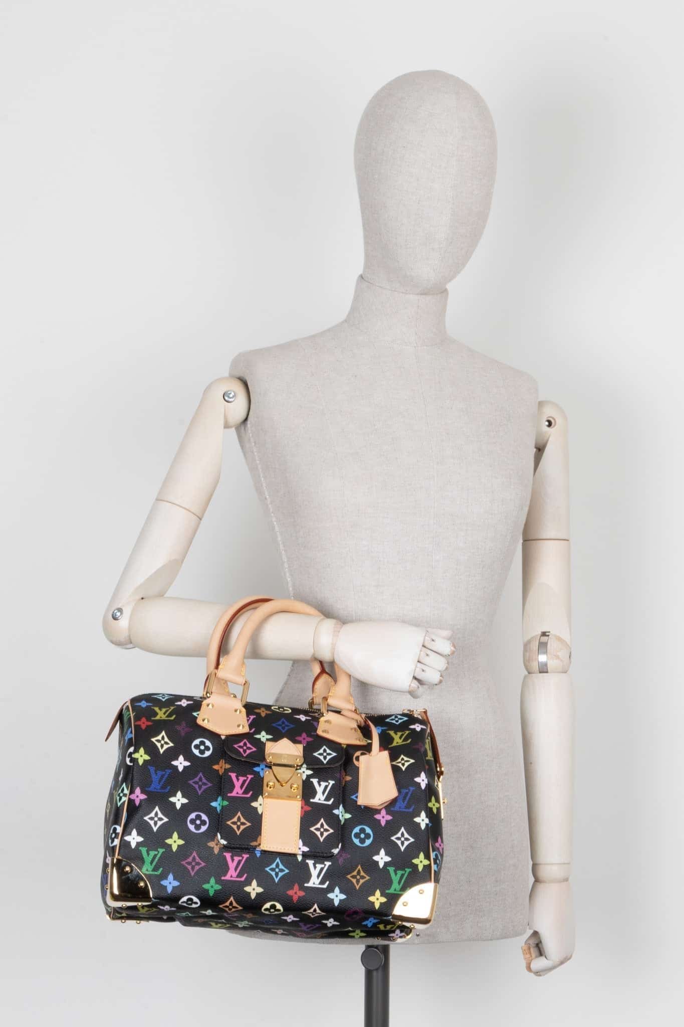 Diese Louis Vuitton Speedy 30 in Black ist ein wahres Meisterwerk der Zusammenarbeit zwischen LV und dem japanischen Künstler Takashi Murakami. Das bunte Monogramm auf dem schwarzen Canvas sorgt für einen lebendigen, modernen Look, der die klassische Speedy-Tasche in einem völlig neuen Licht erscheinen lässt. Ein echtes Statement-Piece, das sich perfekt für all jene eignet, die ihre Liebe zu Kunst und Luxusmode auf stilvolle Weise ausdrücken möchten!