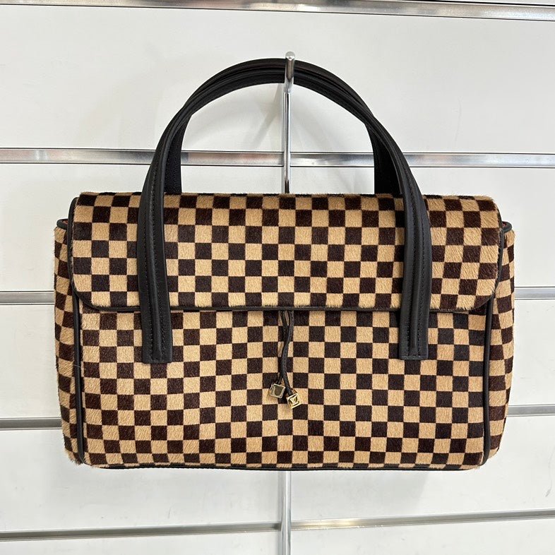 This exquisite used Louis Vuitton Damier Ebene Horse Fur Shoulder Bag is a stunning example of vintage Louis Vuitton bags. Crafted from luxurious pony hair with a striking checkered pattern, this piece showcases the brand’s iconic style. Featuring a sleek leather interior and durable gold hardware, it offers both beauty and durability. Ideal for enthusiasts of used designer handbags, this bag is a fine addition to any collection.