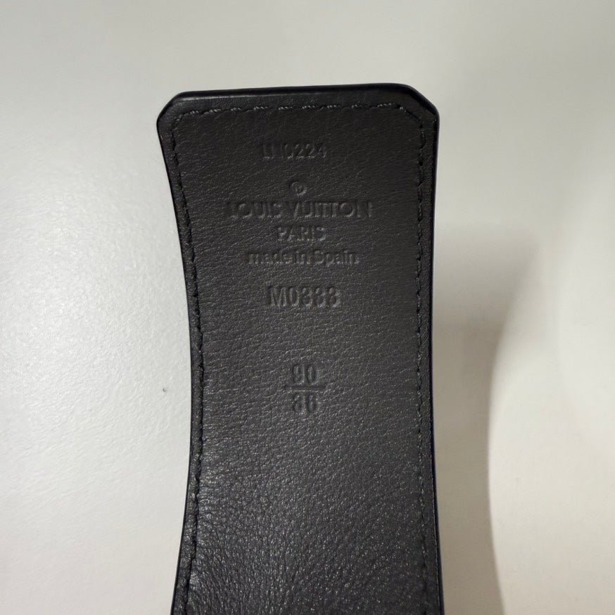 Elevate your wardrobe with this timeless Louis Vuitton black leather belt. Its classic design with a distinctive buckle offers a touch of elegance to any outfit, seamlessly merging luxury and functionality. This is an authentic used Louis Vuitton belt in black leather, a sophisticated Louis Vuitton accessory known for its enduring style. Crafted with high-quality leather, this belt boasts a sleek and refined aesthetic. The iconic buckle adds a luxurious touch, making it an essential addition to any collection.